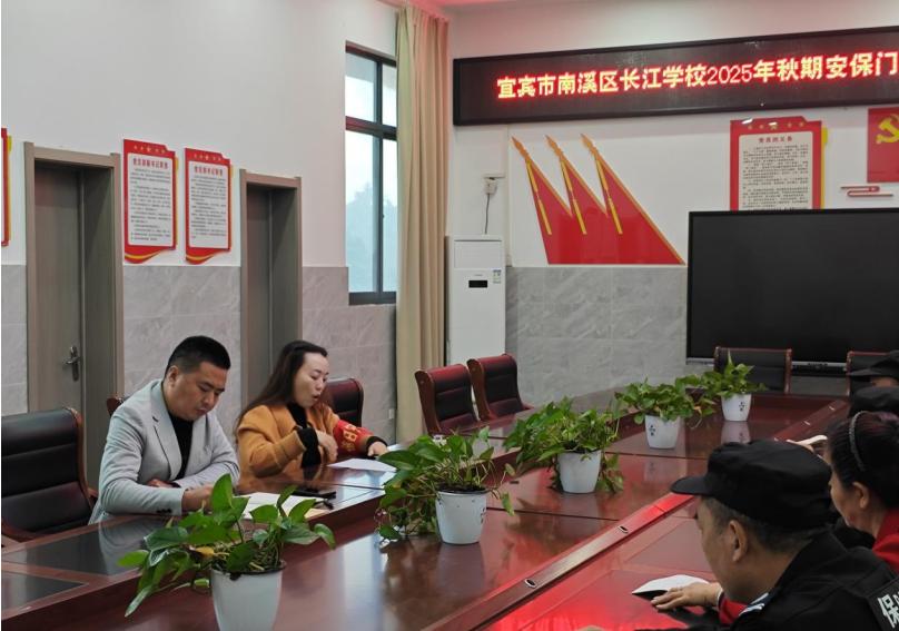 南溪区长江学校校长张清银强调,安保及门岗工作是校园安全的第一道屏障,务必提高警惕、履职尽责,全力保障校园安全稳定。
