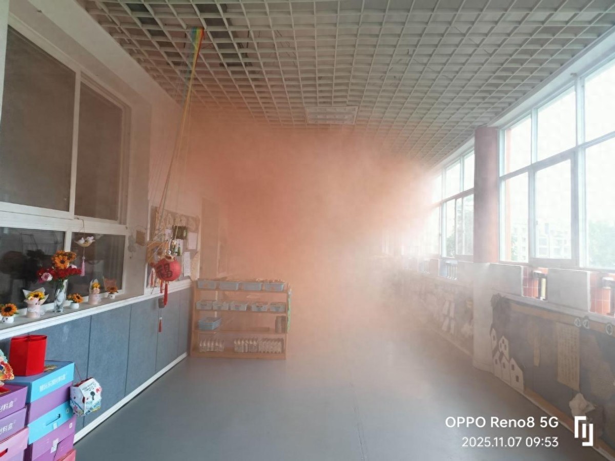 本次演练采取不定火灾时间、不定火灾地点、真实模拟火灾场景。随着浓烟升起触动烟感报警器、分管安全副园长发现火灾第一时间按下手动报警器,校园消防控制器接收到两种报警信号后,联动校园消防广播和声光报警器,全体师生快速有序撤离到安全地带。