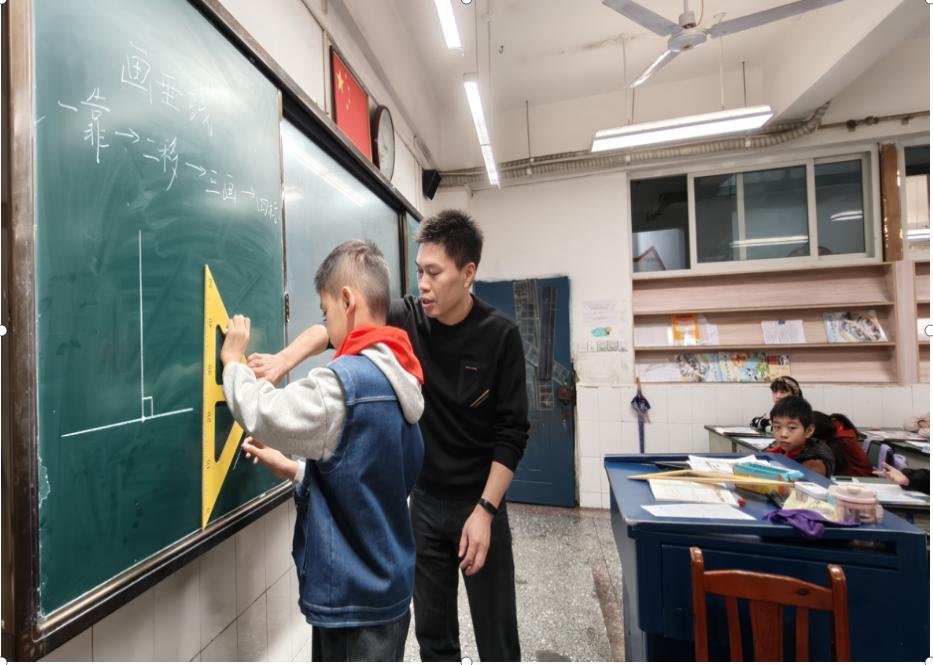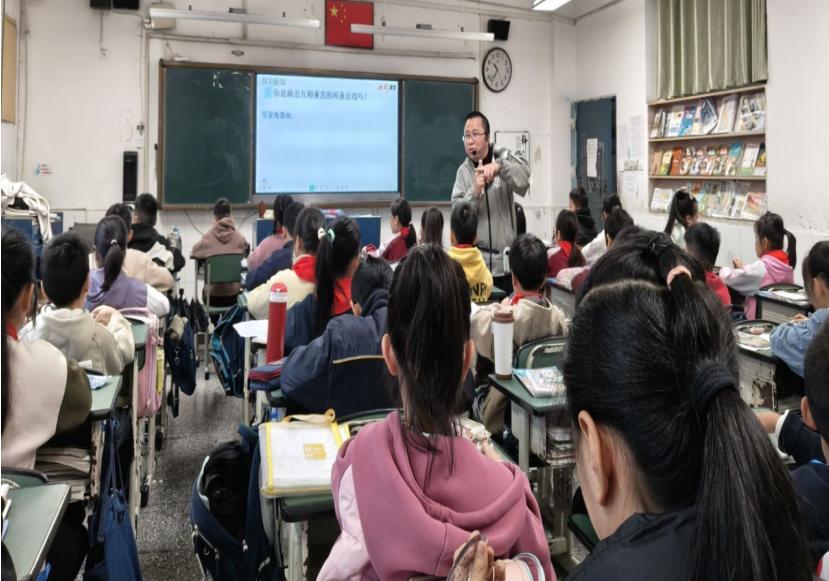 刘老师的课堂严谨而细致,她通过“线边重合、平移靠点、画线标符”的口诀,将操作步骤清晰拆解,引导学生一步步掌握画垂线的核心要领,培养了学生一丝不苟的科学态度。