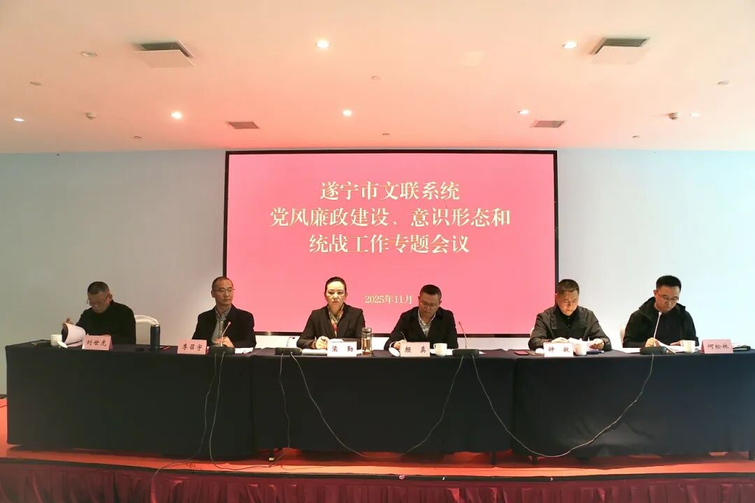 11月7日,遂宁市文联系统召开巡察整改暨党风廉政建设、意识形态等工作推进会,集中部署巡察整改、党风廉政建设、意识形态、党务、统战及财务培训等多项重点工作。市纪委监委驻市委宣传部纪检监察组组长颜真,市文联党组书记、主席梁勤出席会议并讲话。各县(市、区)文联、市级各文艺家协会及相关单位负责人参加会议。会议由市文联党组成员、副主席李召宇主持。