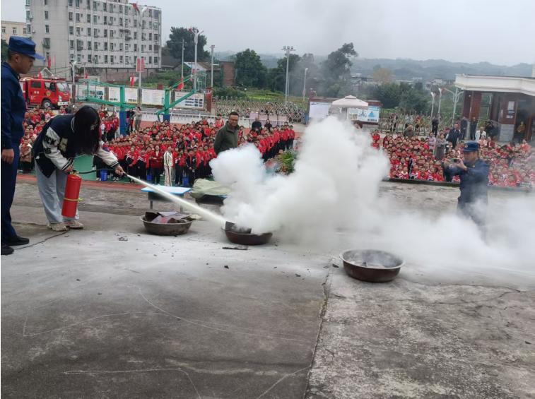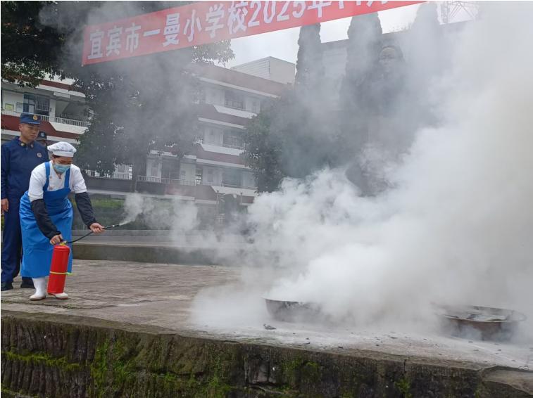 活动还邀请宜宾市一曼小学校门卫、食堂从业人员、教师代表参加消防实践操作。教官结合案例讲解火灾危害与逃生技巧,并演示灭火器“提、拔、握、压”使用步骤。