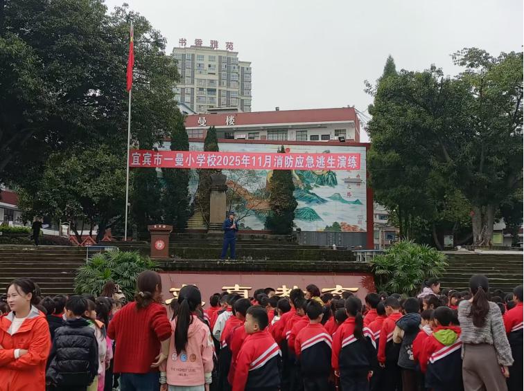 为进一步增强师生的消防应急安全意识,提升应对火灾等突发事件的应急避险和自救互救能力,切实筑牢校园安全防线。2025年11月10日,宜宾市一曼小学校开展了消防应急疏散安全演练活动。