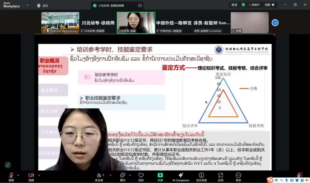 2025年11月7日,川北幼专以线上形式成功举办“老挝国家职业标准共建互认项目”应用推广培训。本次培训聚焦“婴幼儿托育师(IVET3级)”职业标准及配套教学标准,是落实《世界职业技术教育发展天津共识》中“标准互认”理念的具体实践,更是川北幼专深耕“一带一路”职教合作、推进“职教出海”战略的关键成果展示。