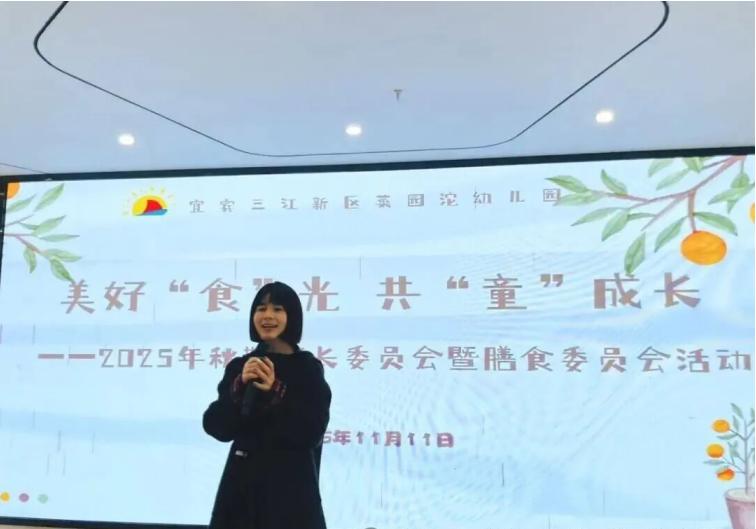 三江新区菜园沱幼儿园园长黄琴暖心的开场致辞。幼儿园的教育离不开家庭的支持,家庭的养育同样需要幼儿园的引导与陪伴。正因如此,家园携手,才能为孩子们的人生铺就更加坚实的基石,让他们在人生的旅程中走得更稳、更远、更高。希望各位家委一如既往地参与幼儿园的管理与监督,并带动更多的家长积极参与家园共育工作,聚心合力,一同守护孩子的成长。