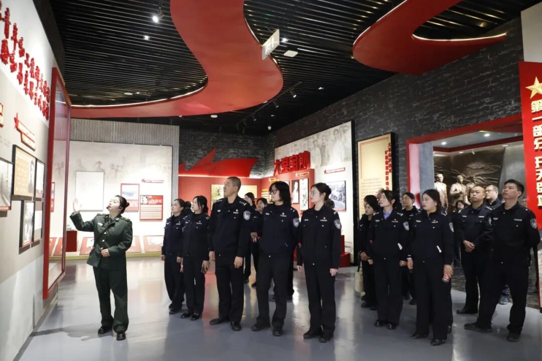 培训期间,组织学员赴蓬溪县旷继勋牛角沟起义遗址开展爱国主义现场教学。在庄严肃穆的革命烈士事迹陈列馆中,全体人员重温起义历程,聆听英雄事迹,观看珍贵实物与历史影像,深刻体悟革命先辈“为有牺牲多壮志”的崇高精神,进一步筑牢忠诚警魂、激发履职热情。