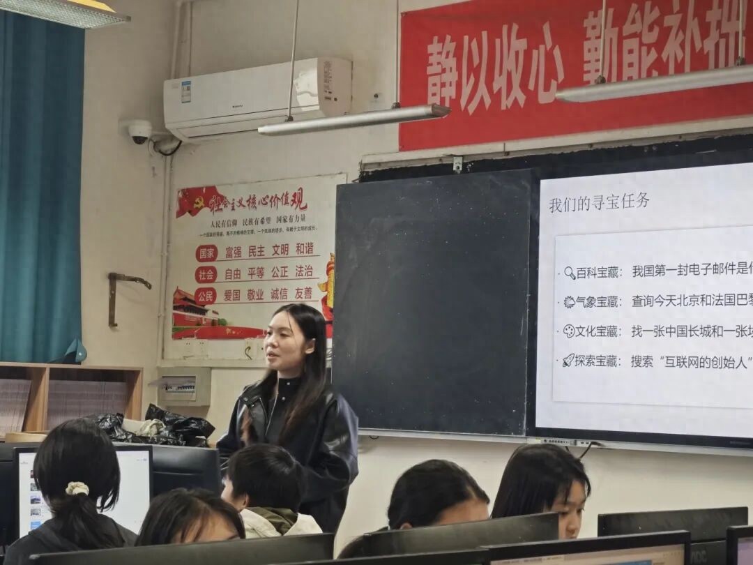 信息技术课堂上,唐月娥老师带领学生“初探互联网”,以趣味互动开启数字世界探索之旅。