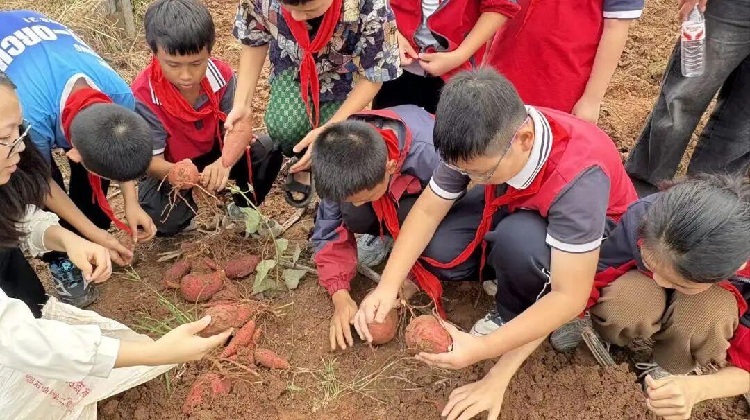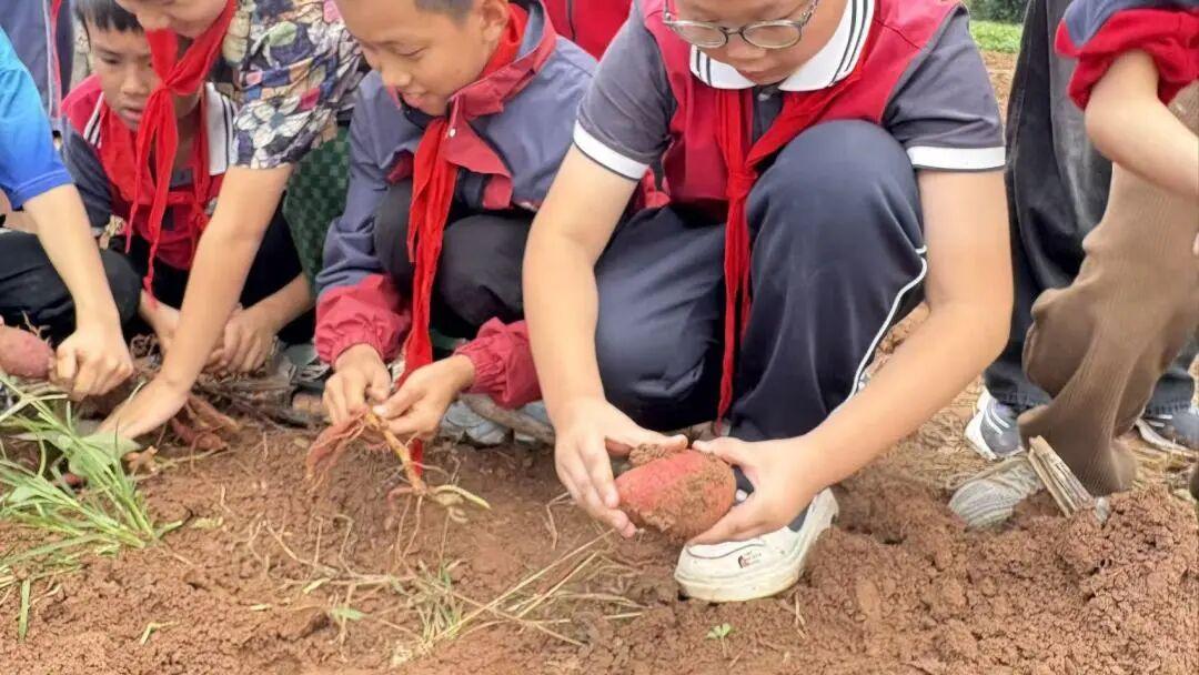 挖宝大作战:“我挖到一个大的!”“看我的,像个小地雷!”红薯地里,欢呼声此起彼伏。孩子们挥舞着小锄头,顺着藤蔓探索,当红扑扑、胖乎乎的红薯破土而出时,那份发自内心的喜悦和成就感,是任何玩具都无法替代的。额头的汗珠,成了这个秋天最闪耀的勋章。
