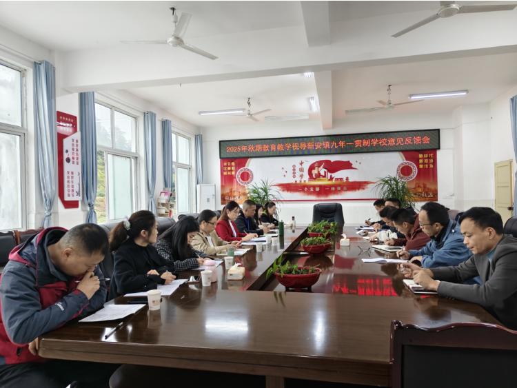 督导反馈与教学研讨会上,督导组首先对屏山县新安镇九年一贯制学校教学常规管理的规范性、教师队伍的成长活力及学生良好的精神风貌给予高度肯定。随后,结合听课、查资料、座谈交流的情况,督导组围绕“深化课堂改革、强化教研实效、优化师资培养”三大核心议题,提出靶向性指导意见:一是要以示范课为标杆,推动教师开展常态化教学反思与磨课,将先进教学理念转化为课堂实践;二是要聚焦核心素养,构建“教—学—评”一体化教学模式,提升课堂教学的针对性与有效性;三是要加强校本教研的系统性与创新性,搭建教师专业成长平台,促进教师队伍整体提质。