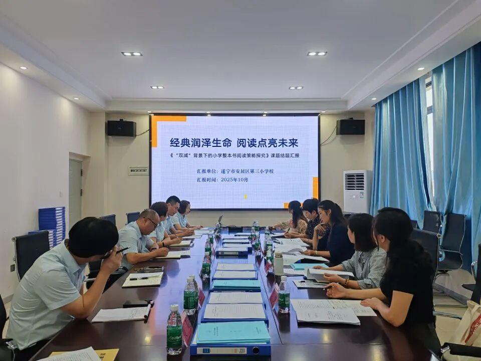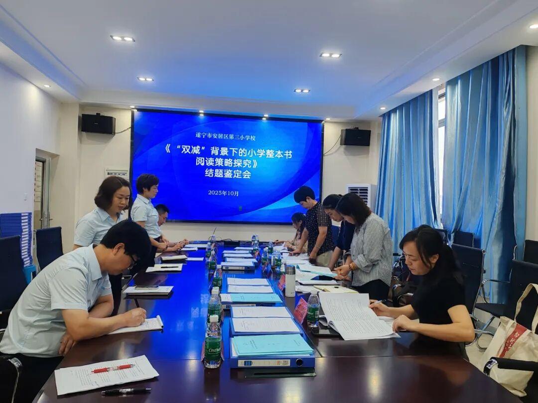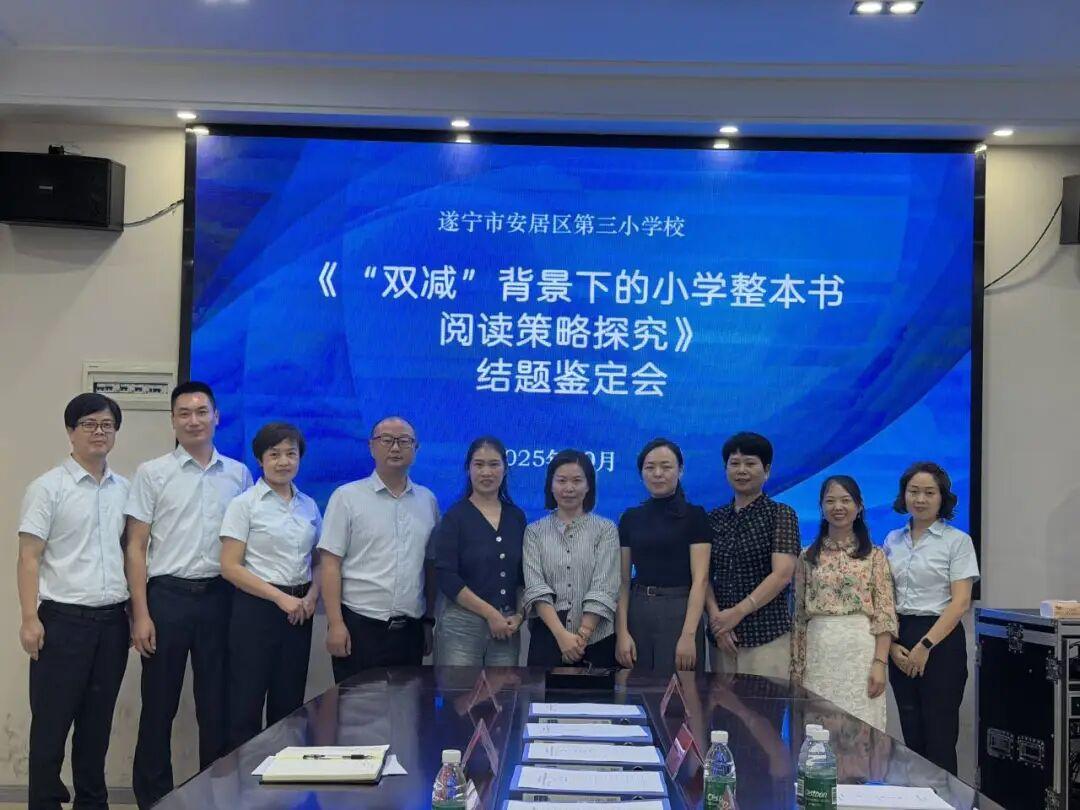 金秋送爽,丹桂飘香。近日,遂宁市安居区第三小学校迎来了备受瞩目的市级课题“双减”背景下的小学整本书阅读策略探究结题鉴定会。会议在学校D304会议室隆重举行,来自潼南区、遂宁市的多位教育专家齐聚一堂,共同检阅课题研究成果。