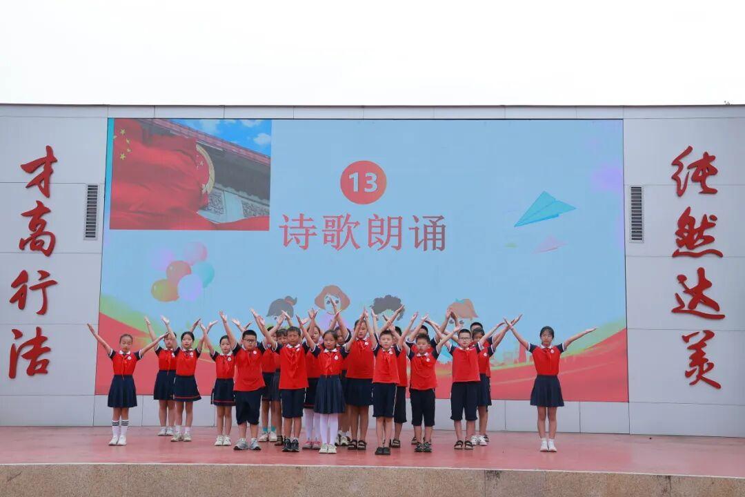 在一片热烈欢快的氛围中,五年级学生带来了精彩绝伦的诗歌朗诵《我爱红色》。同学们用饱含深情的声音,尽情抒发着对祖国的炽热热爱和对红色精神的坚定传承,抑扬顿挫的朗诵声如灵动的音符,回荡在校园的每一个角落,深深感染着在场的每一个人。那激昂的语调、真挚的情感,让大家心中种下了一颗为梦想拼搏的种子。