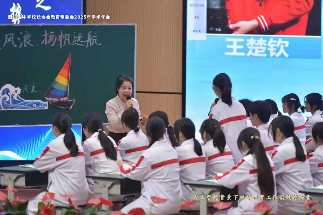 内江二中胡敏老师以《不惧风浪,扬帆远航》为题进行班课展示,课例创造了一个“AI船长”角色,带领同学们登上一艘名为“心航挑战号”的成长巨轮,不仅展现了高超的课堂驾驭能力,更体现了班主任工作中蕴含的教育智慧与人文关怀。