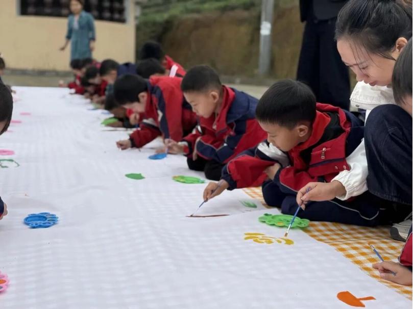 “秋叶寻宝”环节点燃了孩子们的探索热情,一片片形态各异、色彩斑斓的落叶,成为大自然馈赠的“智慧密码”。到达活动场地后,南溪区黄沙镇中心小学校各班以班为单位,在老师的指导下解锁树叶创意画的奥秘——观察叶片纹理、搭配色彩层次、发挥奇思妙想,将秋日灵感转化为生动的艺术作品。这场户外实践,不仅锻炼了孩子们的观察力与动手能力,更让他们在自然中学会思考、乐于创造。