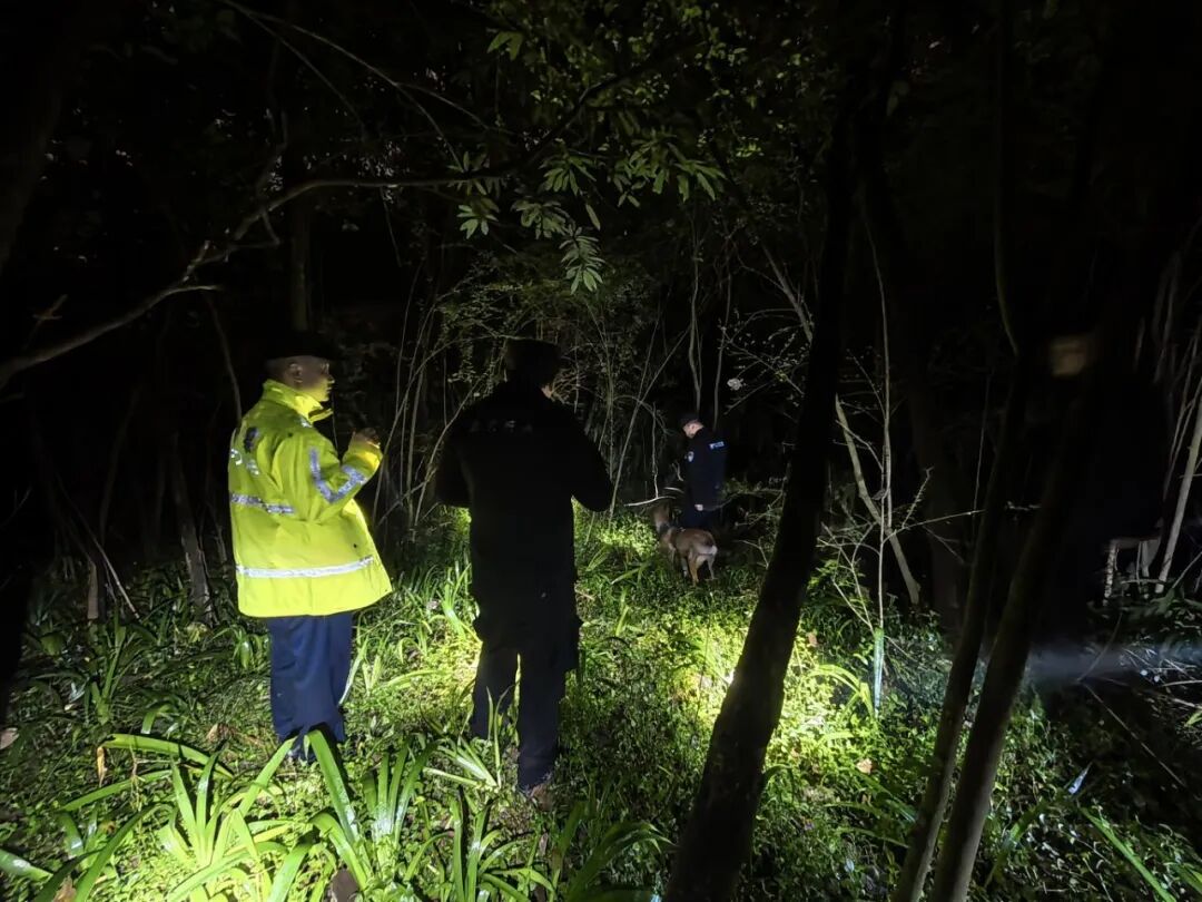 接到报警后,北固派出所立即组织警力赶赴现场。考虑到老人年事已高、身份特殊,且山区夜间温度低、地形复杂,经综合研判后,北固派出所启动应急机制,联合市局刑侦支队警犬技术大队、消防救援力量一同展开救援,同步安排备勤组调阅老人走失前附近沿路监控。