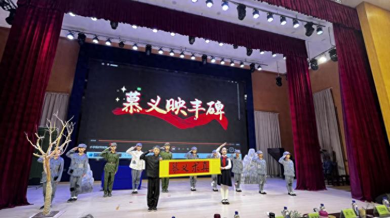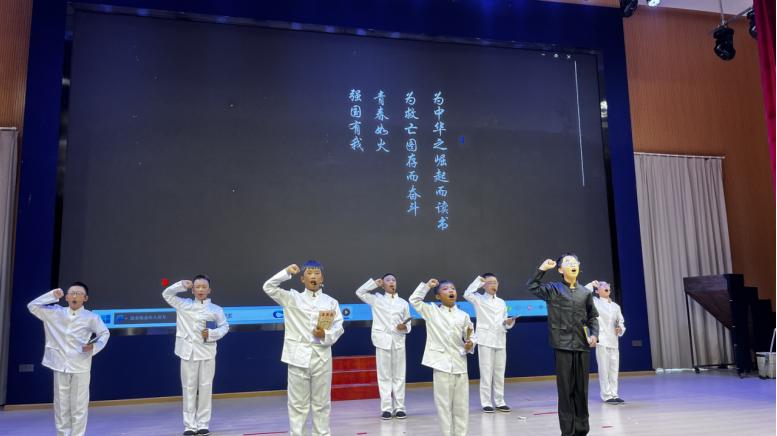 比赛现场,气氛热烈而庄重。赛事分小学组、初中组、高中组进行。其中,小学组与初中组的同学们在现场轮番登台,而高中组的比赛则采用评委集中观看参赛视频的方式进行评审。尽管形式不同,但各参赛队伍均围绕“强国有我”的主题,将课本中的红色经典与时代楷模故事精彩呈现。