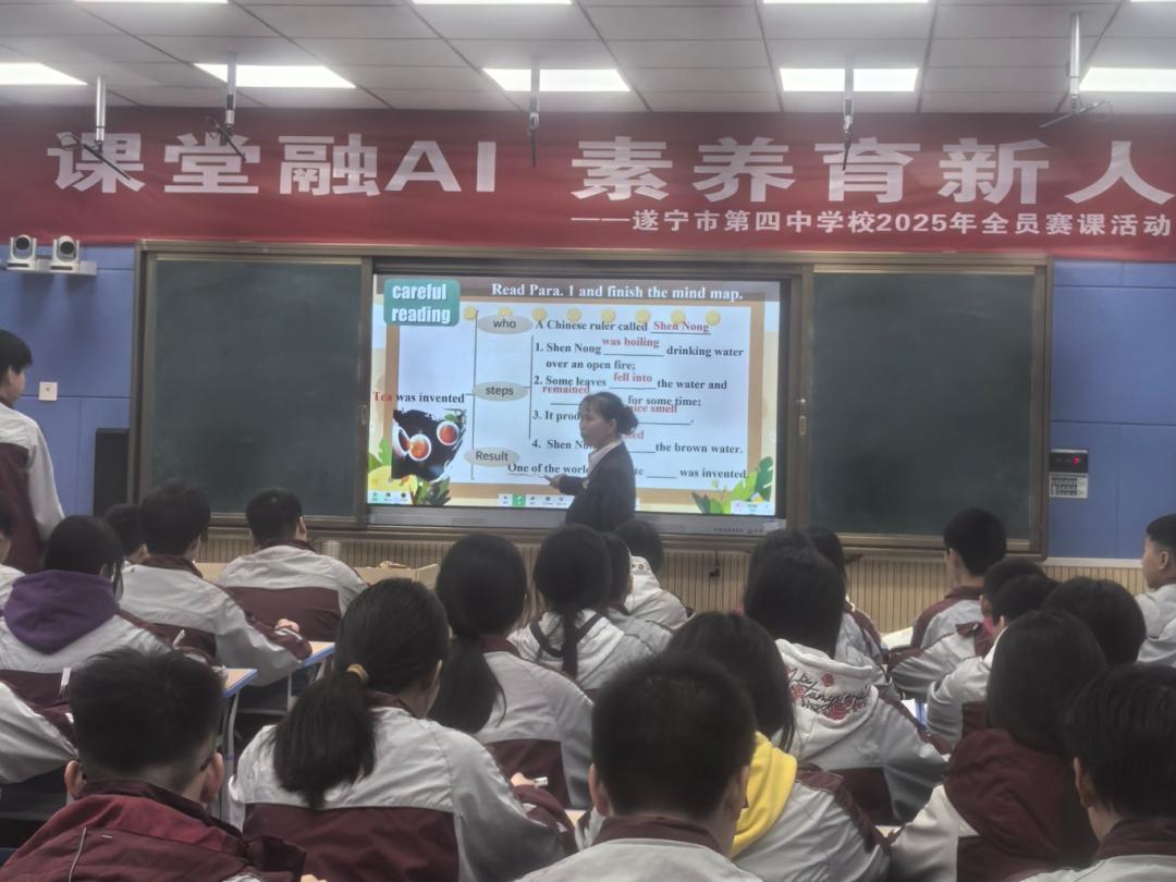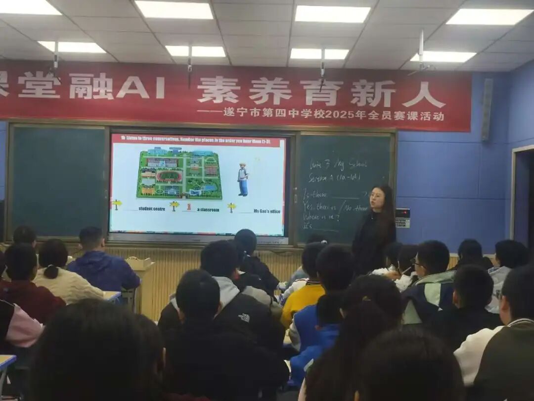 为进一步深化新课程改革,提高课堂教学质量,遂宁四中(二中滨江校区)初中英语组近日成功举办了全员赛课活动。本次活动以“课堂融AI,素养育新人”为主题,全体初中英语教师积极参与,充分展示了各自独特的教学风格和扎实的专业素养。