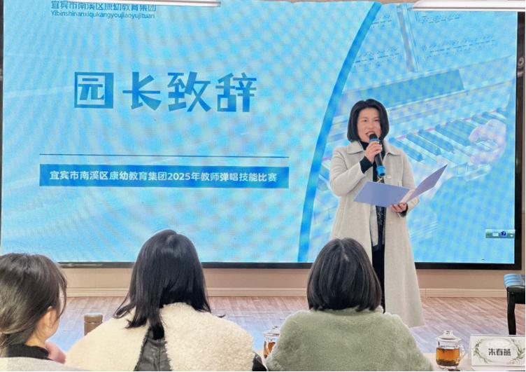 活动伊始,南溪区康幼集团总园长朱春燕登台致辞。她强调,音乐是幼儿启蒙教育的重要载体,弹唱技能是幼教工作者的核心专业素养,更是连接师幼心灵的情感纽带。本次比赛不仅为教师们提供了一个展示专业技能的平台,更是大家相互学习、共同提升的宝贵契机。她寄语全体教师:“以琴为翼、以歌为声,在竞技中绽放光彩,在交流中锤炼成长。”朱园长的话语既明确了赛事的专业价值,又凝聚起幼教人深耕主业、共育童心的奋进力量。