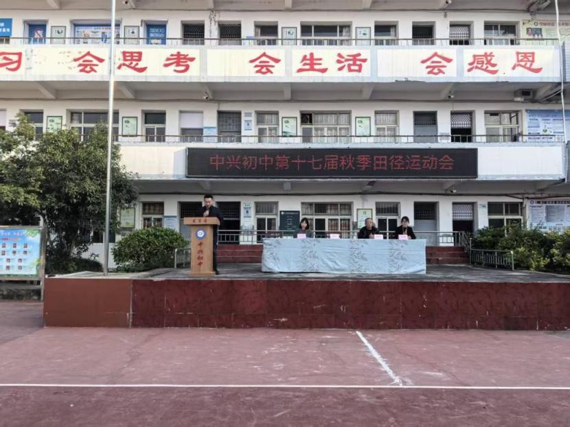 为丰富校园文体生活,增强学生体质,培养团队协作与拼搏精神,遂宁市安居区中兴初中于2025年11月20日举办了第十七届秋季田径运动会。本次运动会设置了短跑、长跑、跳远、跳高、实心球等个人项目与跳长绳、接力赛和拔河等集体项目。