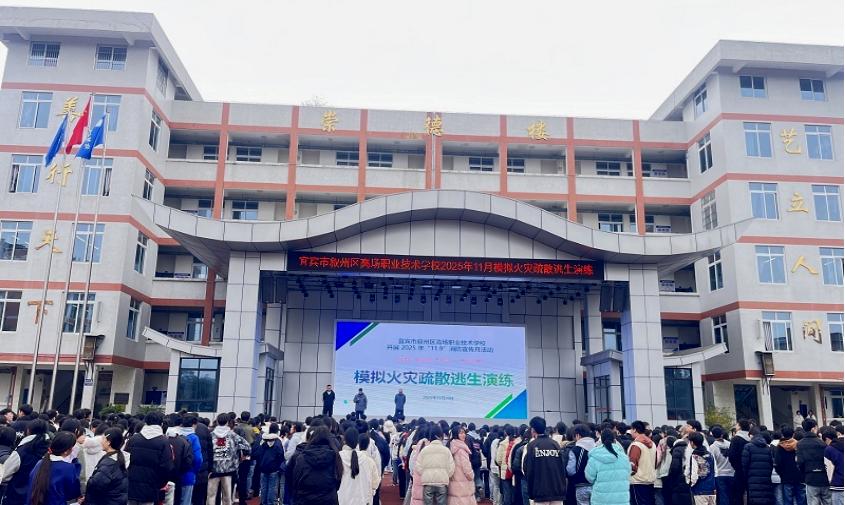 为筑牢校园安全防线,进一步强化全校师生消防安全意识,提高校园安全管理,保障师生生命财产安全。2025年11月20日,宜宾市叙州区高场职业技术学校组织开展了模拟火灾疏散逃生演练。