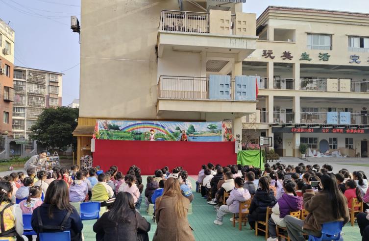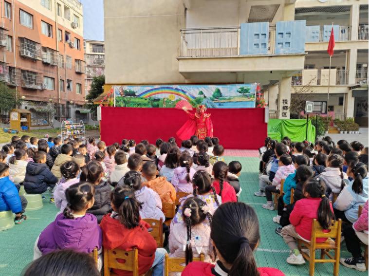 “哇!又变了一个颜色!”“扇子一挥脸就不一样啦!”2025 年 11 月 24 日上午,遂宁市安居区第一幼儿园的户外场地掌声、惊叹声此起彼伏,一场融合川剧变脸元素的传统木偶剧表演在此热闹开演,让孩子们在欢声笑语中沉浸式感受中华优秀传统文化的魅力。