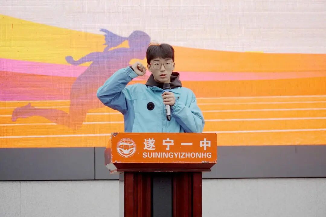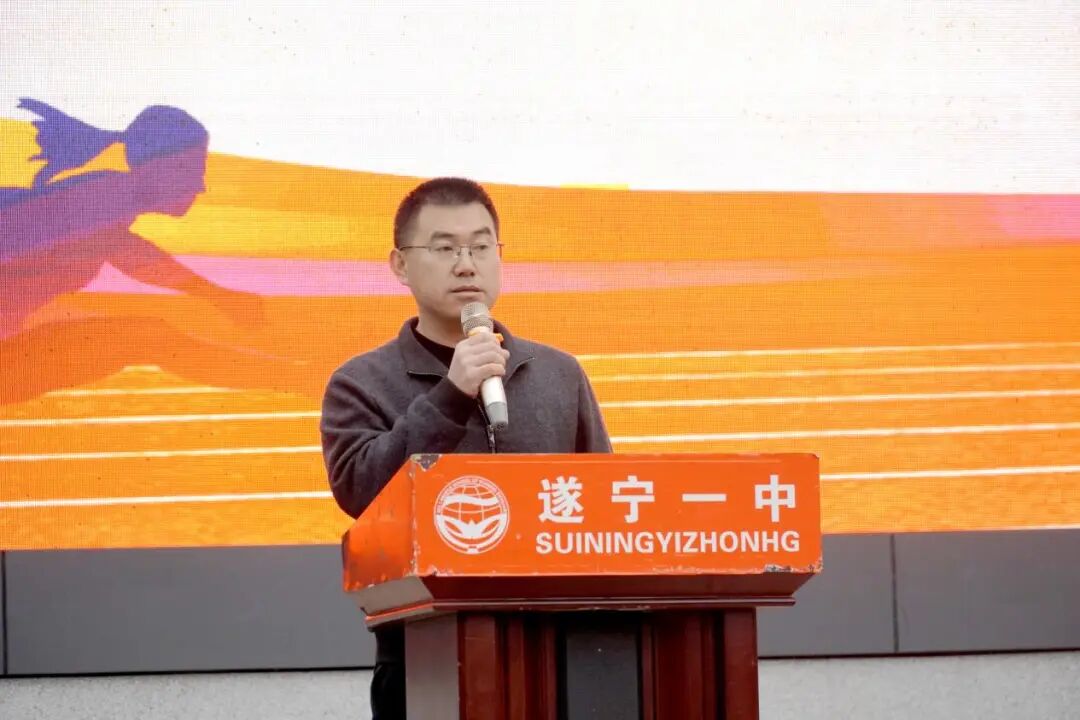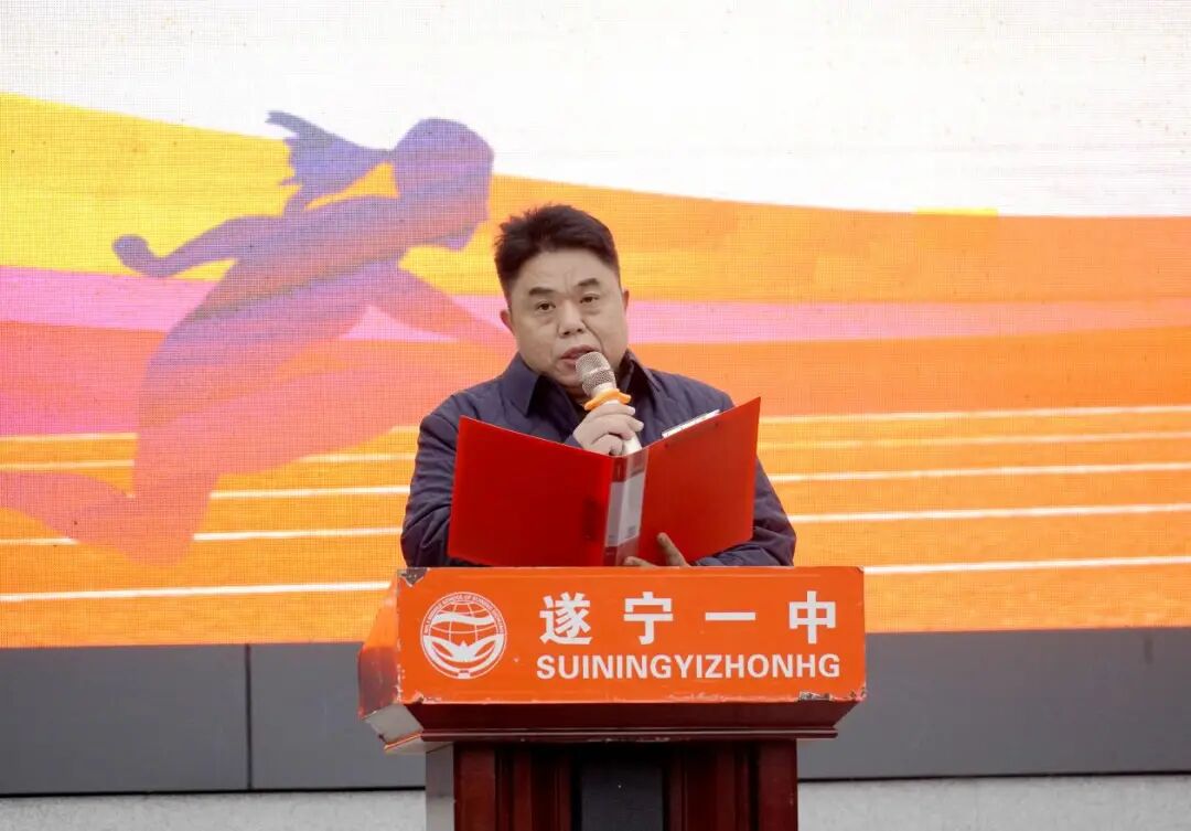 “朔风虽寒,难掩我们运动的热情与蓬勃的朝气……”校长邓再兵在致辞中表示,学校坚持举办运动会,旨在全面落实素质教育,既是对学生体育水平与精神风貌的集中检阅,也是对全体学生体质的一次全面锻炼。他强调,健康的体魄是学习、生活和未来发展的基础,希望同学们以运动会为契机,将“每天锻炼两小时,健康工作五十年,幸福生活一辈子”的理念内化于心。他指出,体育竞赛不仅是个人技能的比拼,更是团队协作精神的体现,希望同学们在赛场上追求个人突破的同时,发扬互助精神,体会“团结就是力量”的真谛。