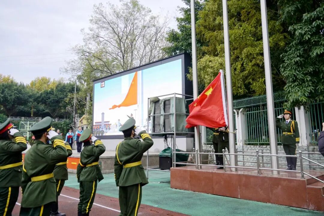 开幕式在雄壮的国歌声中拉开序幕。升旗手振臂一挥,五星红旗冉冉升起,全体师生肃立行注目礼,爱国情怀与集体荣誉感在心中激荡。