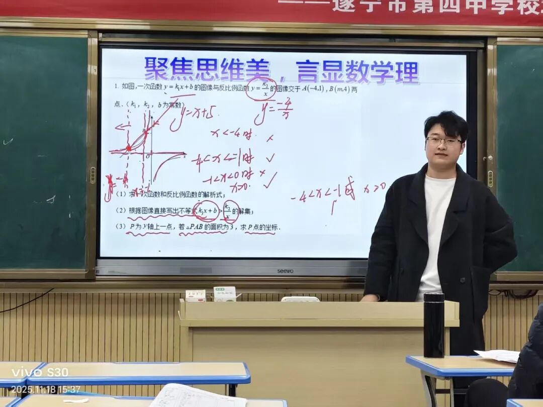 为精进教学技艺,提升解题指导水平,初三数学备课组同步开展教师讲题大赛。大赛聚焦中考重点大题,老师们以“如何让学生听懂、学会、会用”为出发点,深入剖析解题思路,创新教学方法呈现。从题干拆解到突破口寻找,从常规解法到技巧点拨,老师们各展风采,在“讲题”中深化对学情的把握,在“赛课”中碰撞教学智慧。“以讲促学、以赛提质”的理念,让每一次讲解都成为教学方法优化的契机。