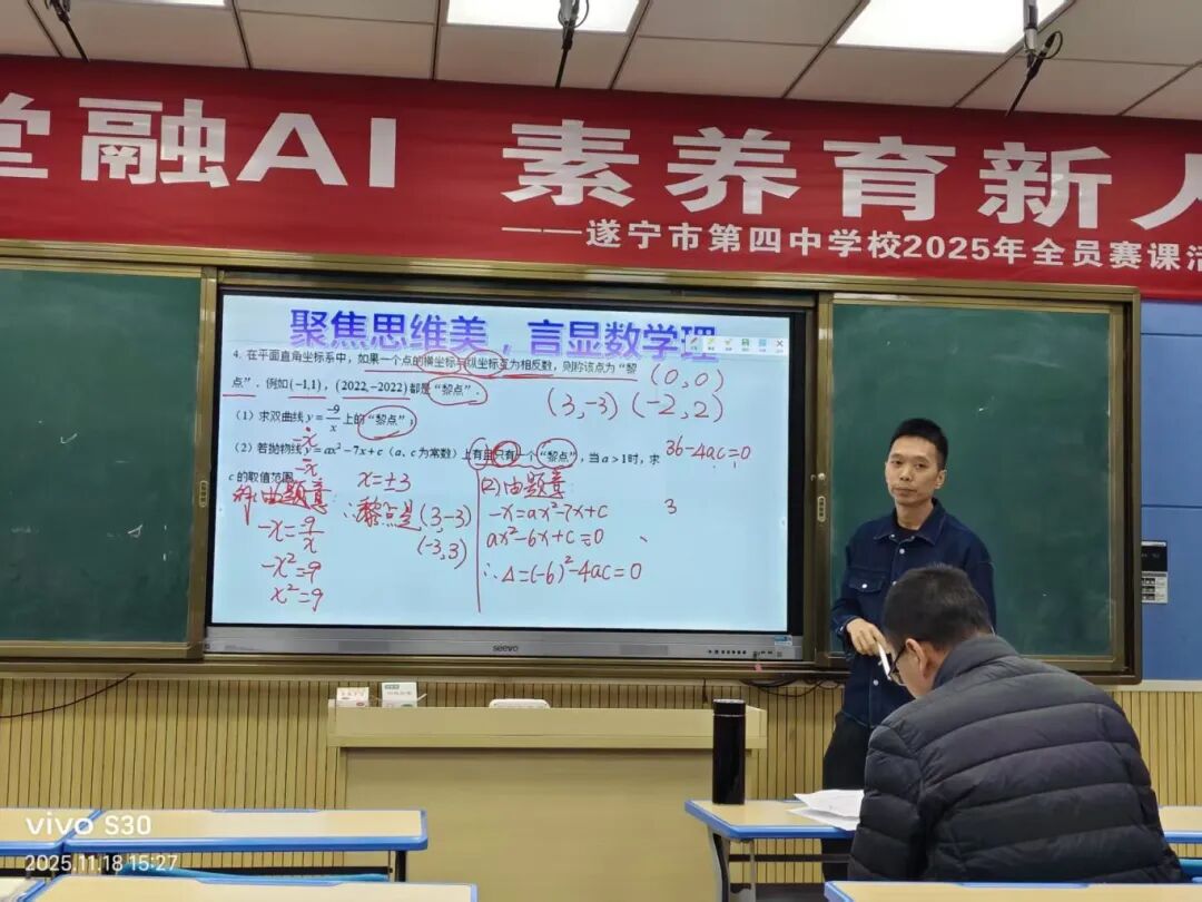 为深化“双减”背景下的素质教育,提升师生数学核心素养,遂宁四中(二中滨江校区)初三数学备课组于11月精心策划并成功举办“数学思维与解题能力提升”主题学科素养月活动。活动以思维导图创作、命题设计大赛、教师讲题比赛为三大抓手,为初三数学教学注入蓬勃活力,实现了学生素养与教师能力的双向提升。