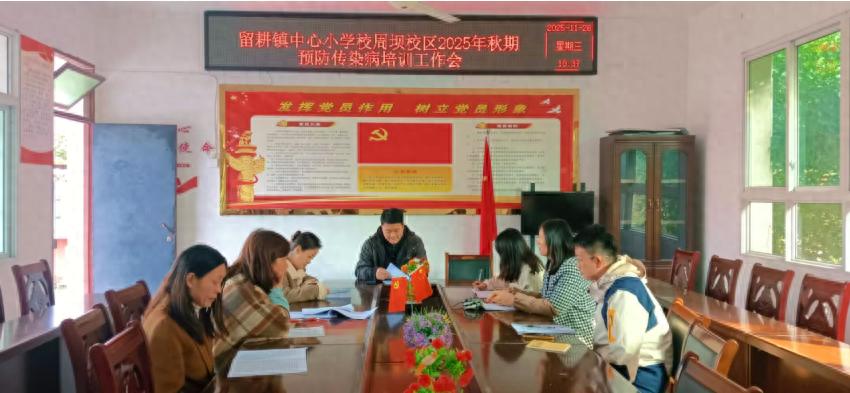 为筑牢校园健康防线,11月26日上午,江安县留耕镇中心小学校周坝校区组织全体教职工召开了2025年秋期预防传染病培训工作会。