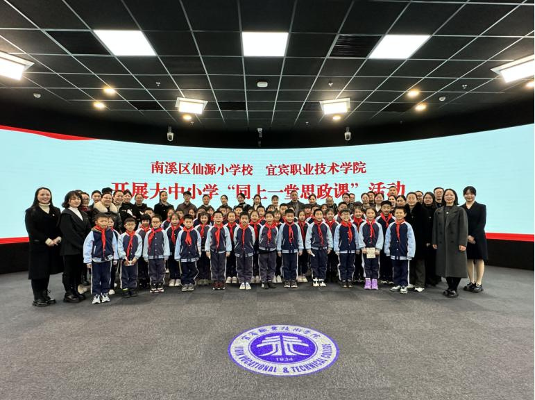 为扎实推进思政课一体化建设,提升思政育人成效,2025年11月25日,宜宾市南溪区仙源小学校党支部精心组织100余名师生代表,奔赴宜宾职业技术学院,开启了“同上一堂思政课”的精彩之旅,活动由带队领导刘晶统筹安排、有序推进。