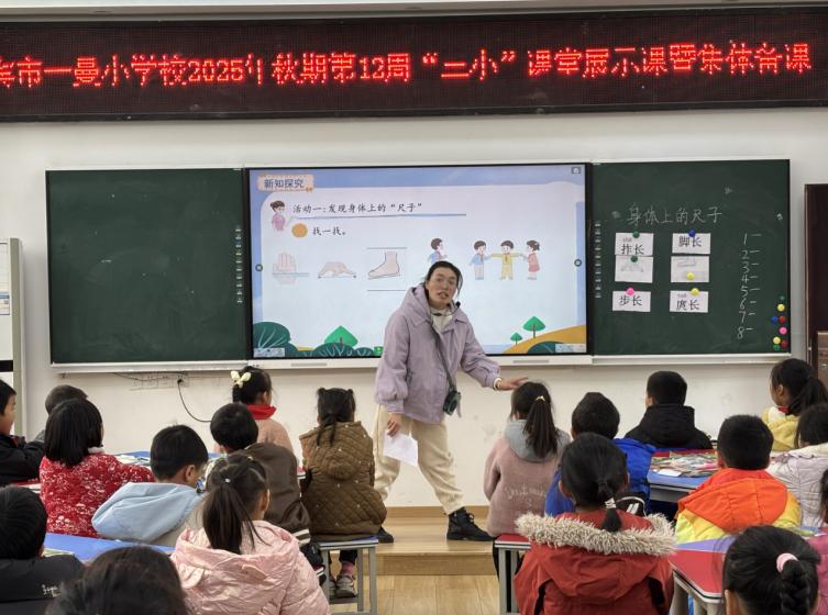 为深化课堂教学改革,推动“三小课堂”理念落地见效,切实提升课堂教学质量与教师教学能力,近日,宜宾市一曼小学校老师任明霞面向全体数学教师开展了二年级数学公开课,授课内容为《身体上的尺子》,为数学教研活动注入实效活力。