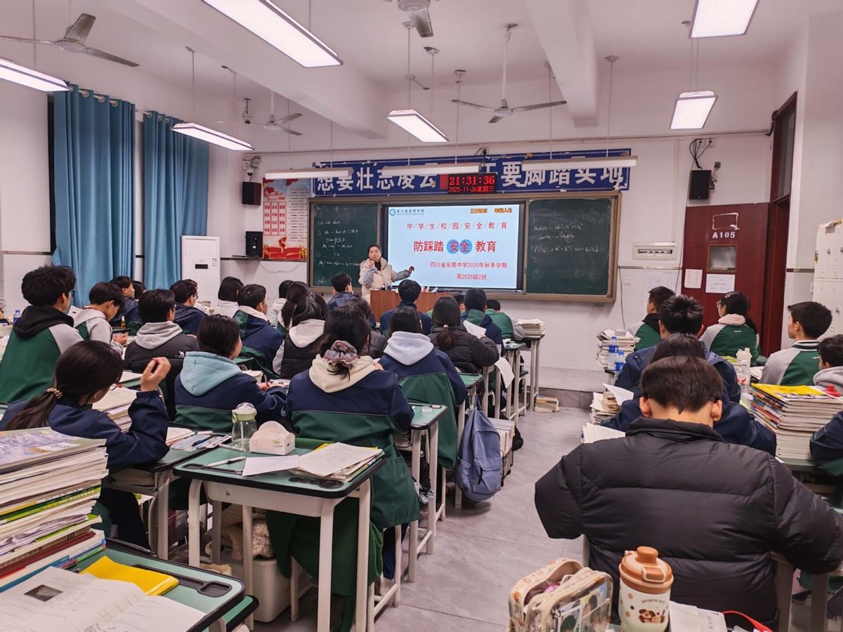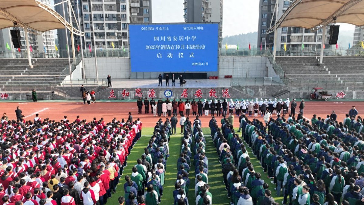 强能避险重实训,防患未然勤演练。11 月 27 日,安居中学开展以“全民消防,生命至上”为主题的消防应急疏散演练暨消防安全技能培训活动。全校师生、安保人员、宿舍管理员和食堂工作人员共同参与了本次活动。