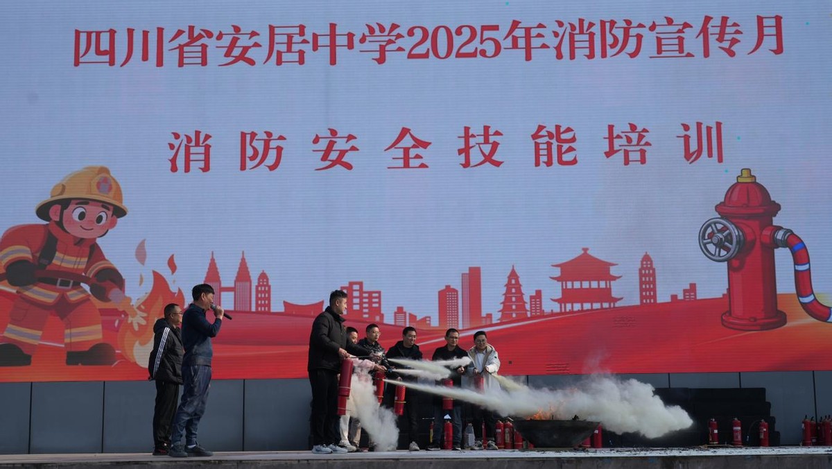 随后,学校保卫科科长尹林围绕逃生急救技巧、灭火器规范使用等内容,为全体参与人员开展专题安全技能培训。最后,分管安全工作的副校长蒋勇对本次活动进行总结。他强调,一是消防安全是校园安全的重中之重,全体师生要始终绷紧安全之弦,切实增强风险防范的思想自觉和行动自觉;二是要将本次培训所学的安全技能学深悟透、学以致用,在日常学习生活中熟练掌握应急处置方法,提升自救互救能力;三是安全工作需常抓不懈、久久为功,要持续完善校园安全防控体系,推动形成全员参与、全程覆盖、全方位保障的安全工作格局。(邹小康 来源:安居中学)