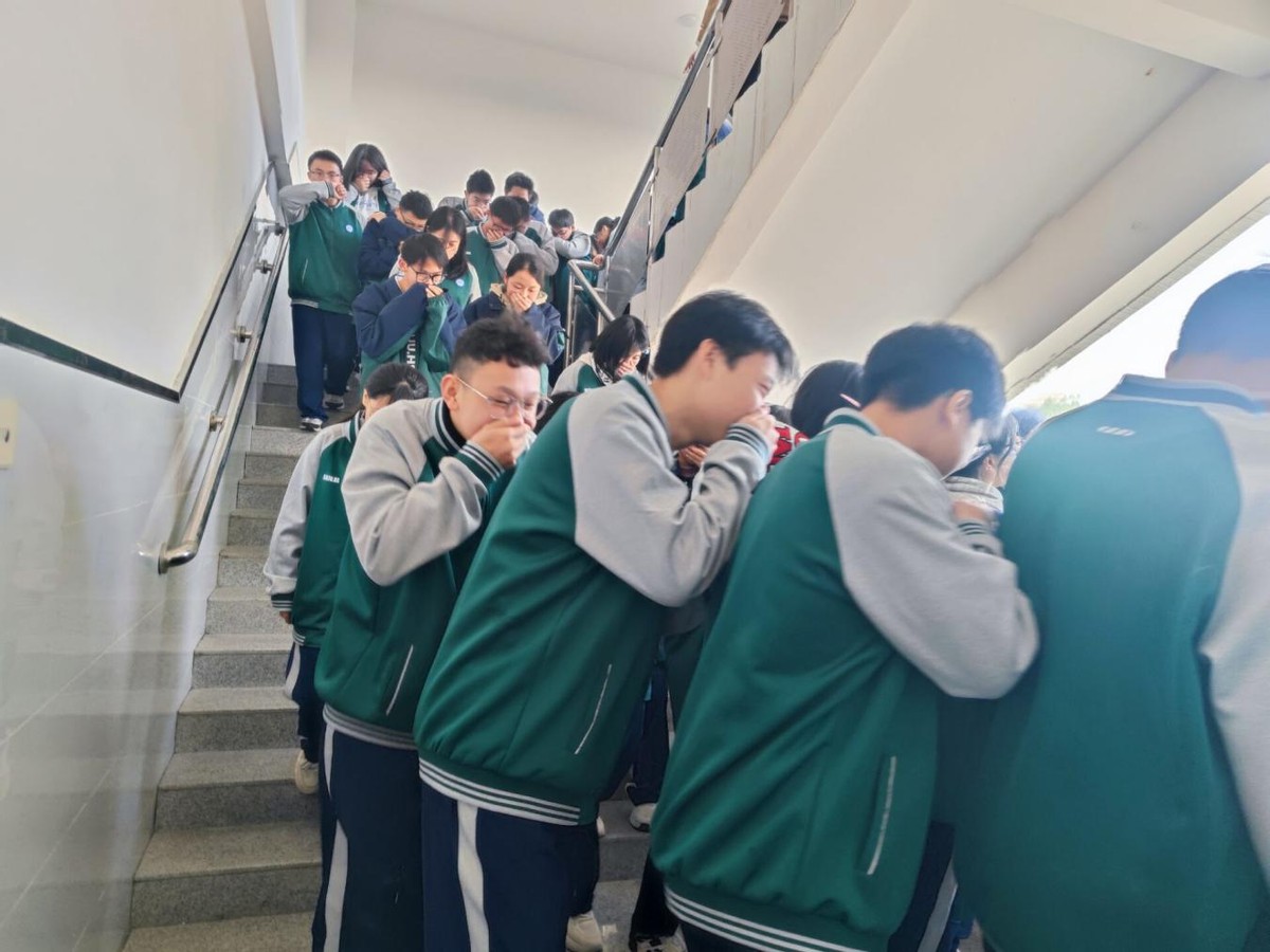 活动前期,各班主任牵头组织开展防踩踏安全教育及消防安全主题班会,进一步强化师生安全防范意识。消防警报信号发出后,各班学生在任课教师的引导下,按照预定疏散路线弯腰捂鼻、快速撤离,整个疏散过程井然有序。