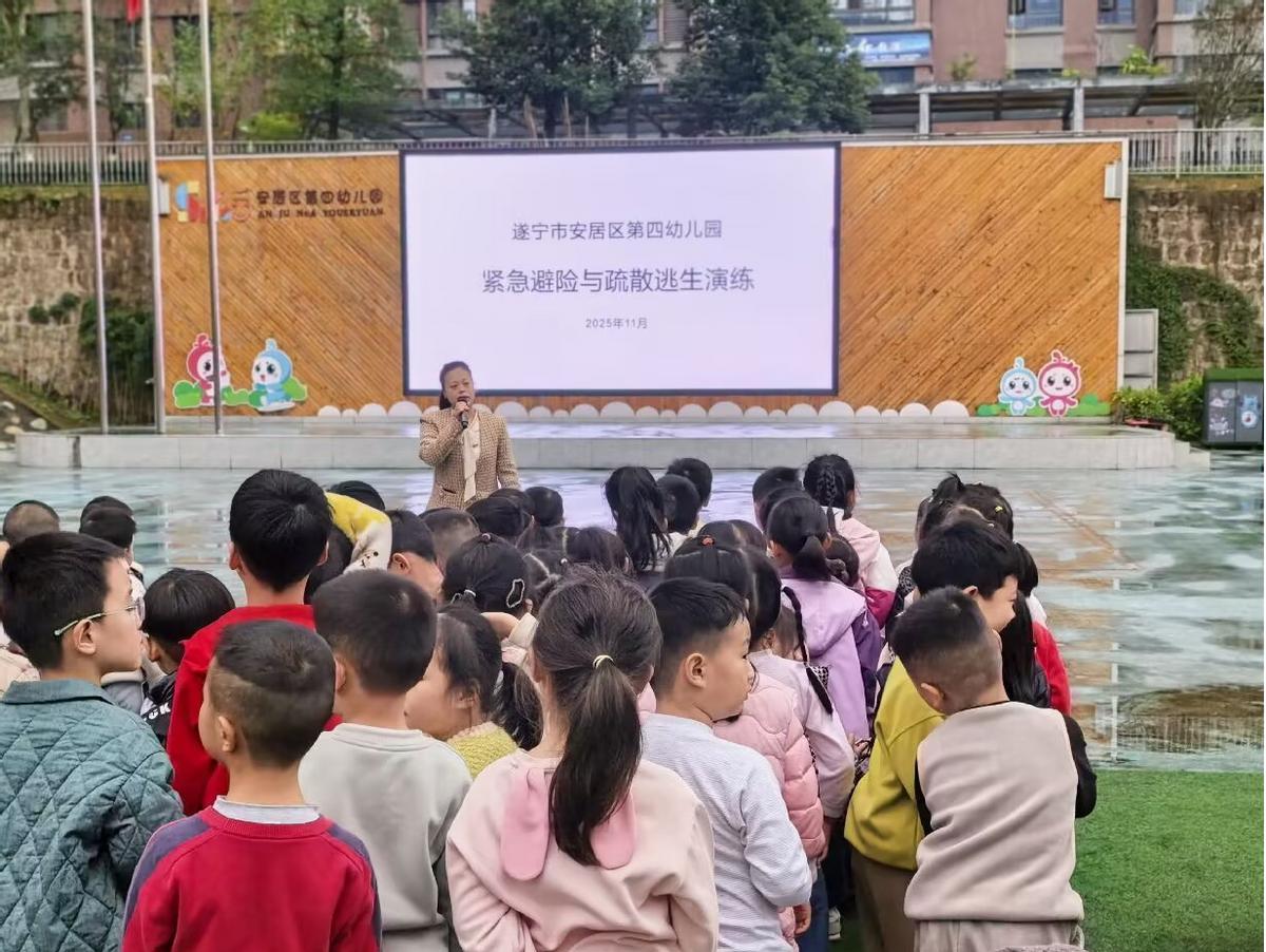 为了提升幼儿的防火逃生安全意识,增强师生在防火救灾、自救自护及应对突发事件方面的能力,2025年11月7日上午,安居四幼成功开展了消防应急疏散演练,全园500余名师生参与此次活动。