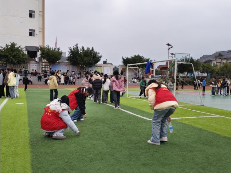 赛场之外,志愿服务与后勤保障温暖护航。裁判员们坚守岗位,严谨记录每一项成绩,公平公正裁决每一次赛事,用认真负责保障赛事有序推进;学生志愿者们主动参与赛场服务,捡拾垃圾、协助裁判、帮扶参赛同学,忙碌的身影成为赛场一道温暖的风景线;班主任全程陪同学生,赛前叮嘱注意事项、赛中加油鼓劲、赛后安抚情绪,用细致关怀为同学们保驾护航,全体师生各司其职、互帮互助,共同让本次运动会圆满推进。