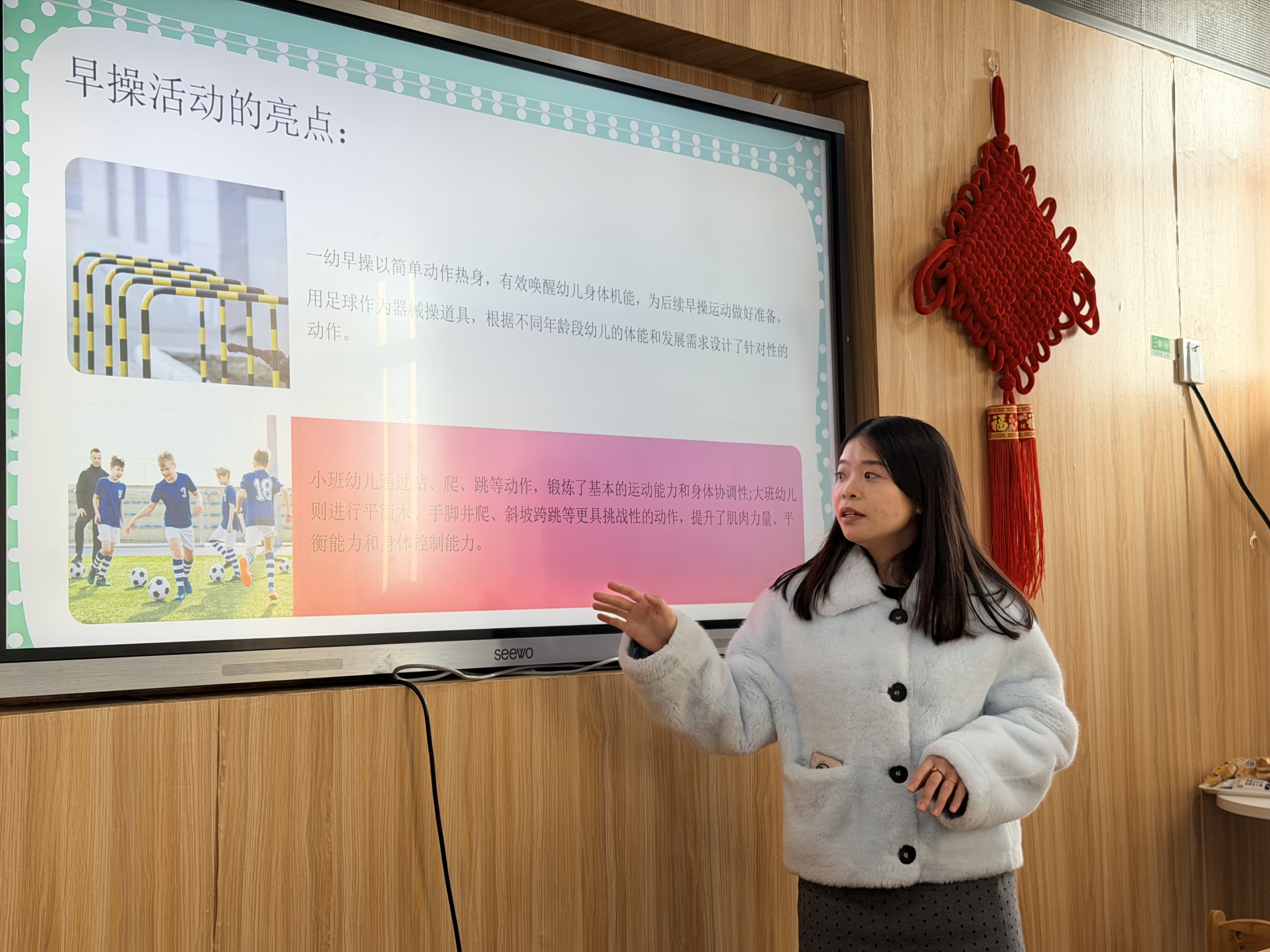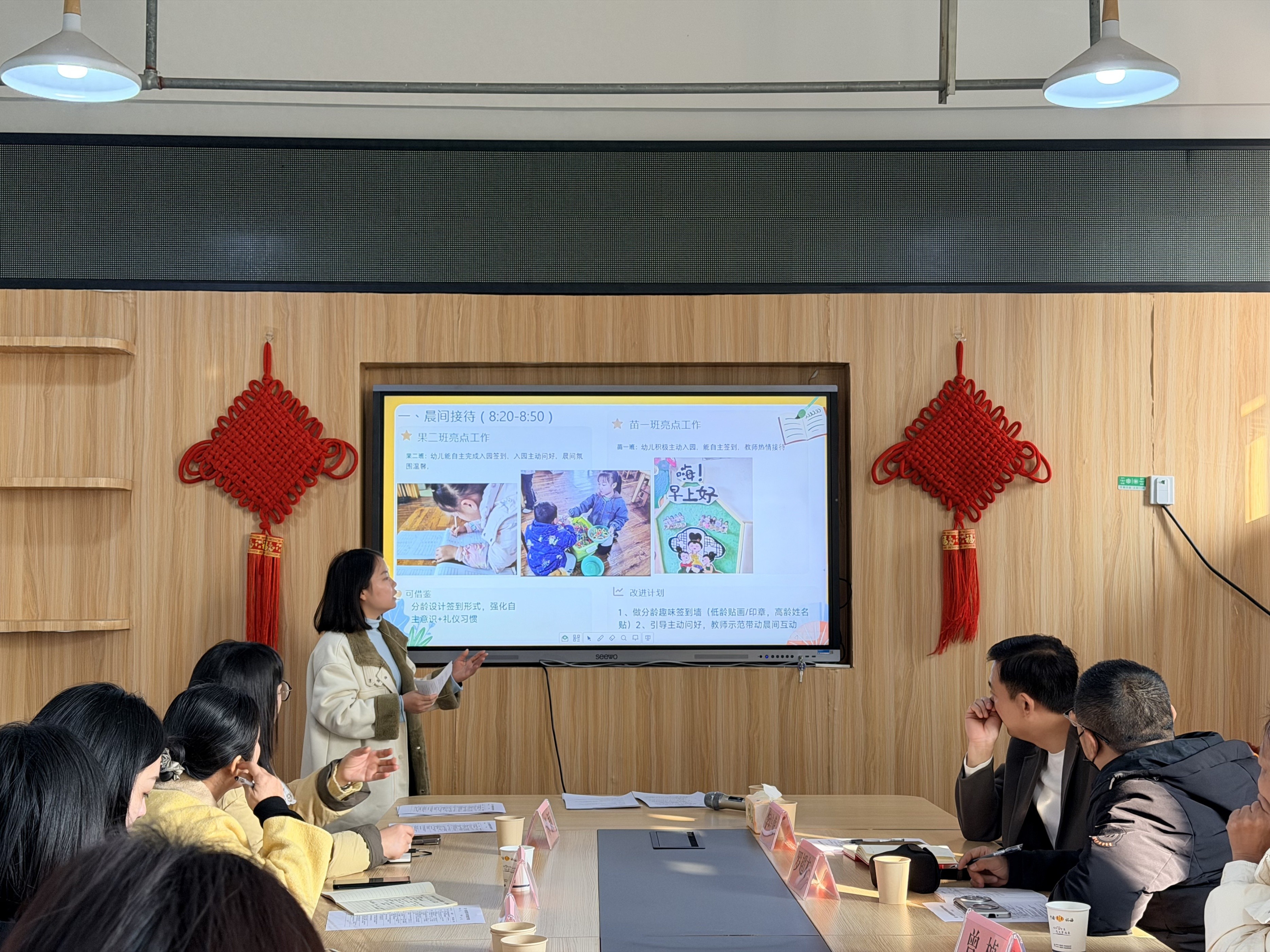 活动开始,来自共同体成员园的7名教师依次进行跟岗学习汇报。他们以PPT形式,结合8分钟的详实分享,从保教常规管理、班级环境创设、幼儿行为观察等方面,生动呈现了在安居一幼两天跟岗的核心收获,深入剖析了可借鉴的先进做法,并针对性提出本园后续改进计划。