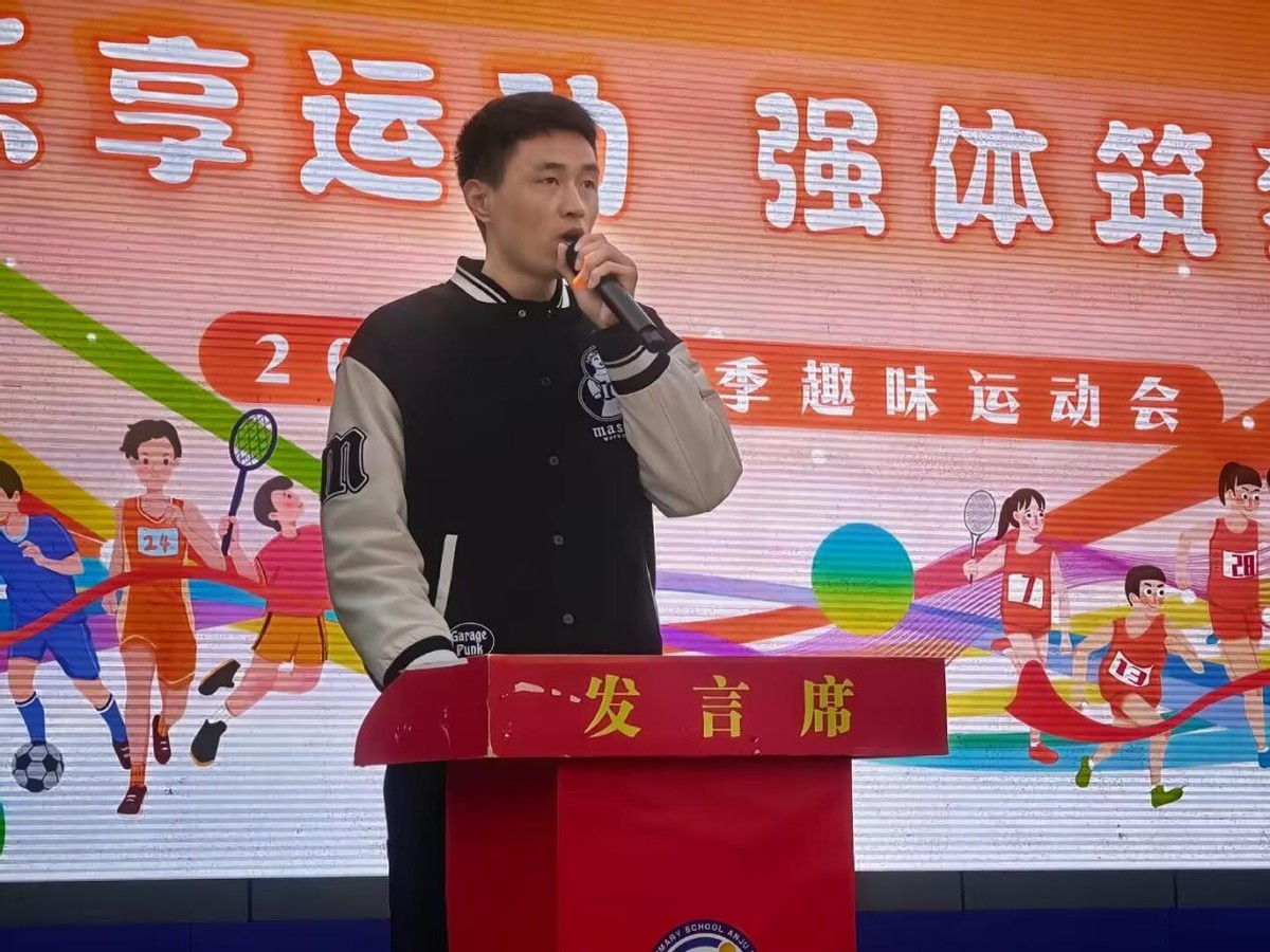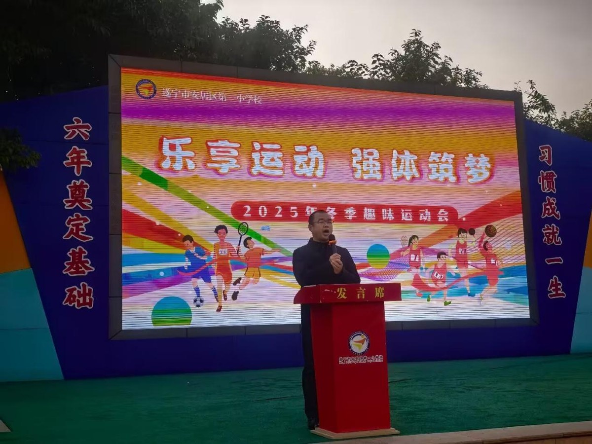 学校党总支书记谭春宏宣布2025年安居一小冬季趣味运动会开幕!