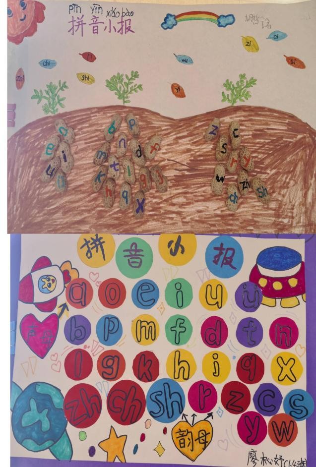 拼音虽小,学问却大。清新的画面,稚嫩的书写,孩子们将抽象的拼音变成了色彩斑斓的世界。这一张张小报见证着孩子们的成长。