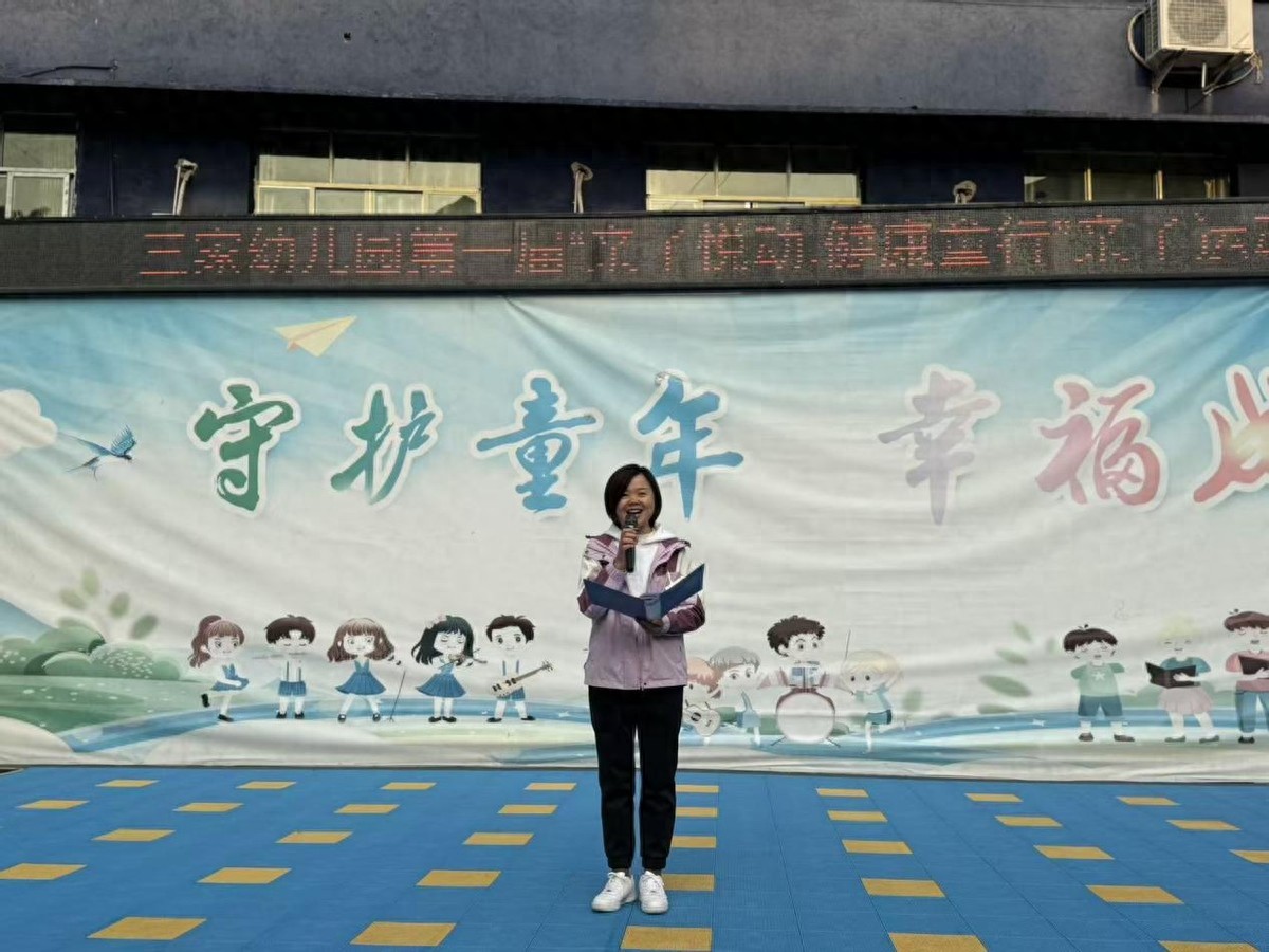 三家镇中心幼儿园园长刘晓华在致辞中向运动会的召开表示祝贺,并强调了运动对幼儿协调能力、体质提升和意志培养的重要作用,鼓励孩子们享受运动乐趣,在挑战中成长,同时希望家长通过互动更直观地感受孩子的进步。米米2班王一帆小朋友作为幼儿代表发言,用稚嫩真诚的话语表达了对运动会的期待与对运动的热爱,赢得了现场阵阵掌声。