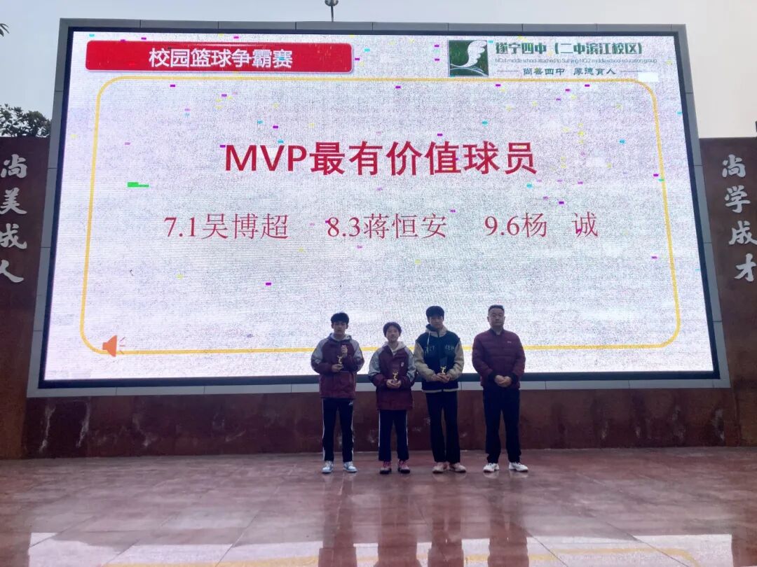 随着终场哨声清脆响起,遂宁四中(二中滨江校区)2025 年校园篮球争霸赛暨课后服务展示圆满落幕。但少年们的热血与热爱永不落幕,赛场上收获的勇气、坚持与团结,将化作成长路上的宝贵财富,陪伴他们在人生的 “赛场” 上继续奋勇向前、无畏冲锋。