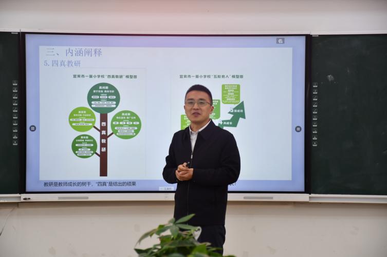 随后,专题讲座环节如期开展。宜宾市一曼小学校校长毛朝猛以《乘势而上启新程 踔厉奋发谱新篇》为题,从改革背景、改革足迹、内涵阐释、改革成效、未来展望等方面分享了“三小课堂”改革思路与举措,为校际协同发展提供了宝贵借鉴;该校党总支书记曾向荣以《传承红色基因,铸就育人品牌》为题,聚焦红色文化育人路径,阐述了学校依托红色资源、厚植学生家国情怀的具体实践。