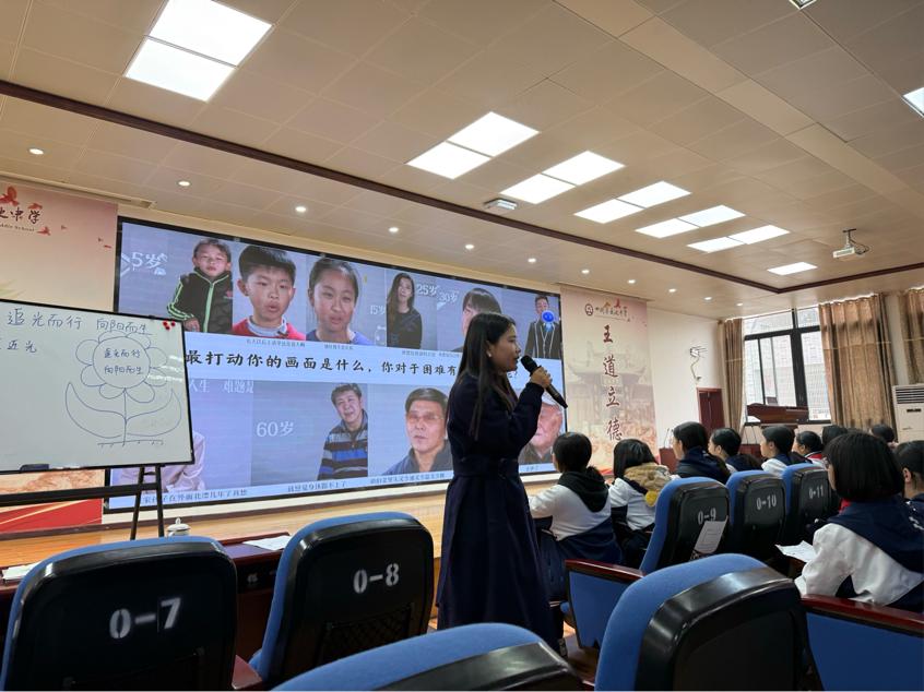 汤秀老师《追光而行 向阳而生》的主题课堂上,生命教育的温度与力量缓缓流淌。课堂以“靠近光、成为光、散发光”为核心任务,引导学生在互动与感悟中看见成长的微光,在思考与践行中汲取前行的力量。汤老师用温柔而坚定的话语,将生命的意义、成长的勇气融入每一个环节,让学生明白:成长路上,每一份坚持都是向光的奔赴,每一次努力都能成为照亮自己与他人的光。