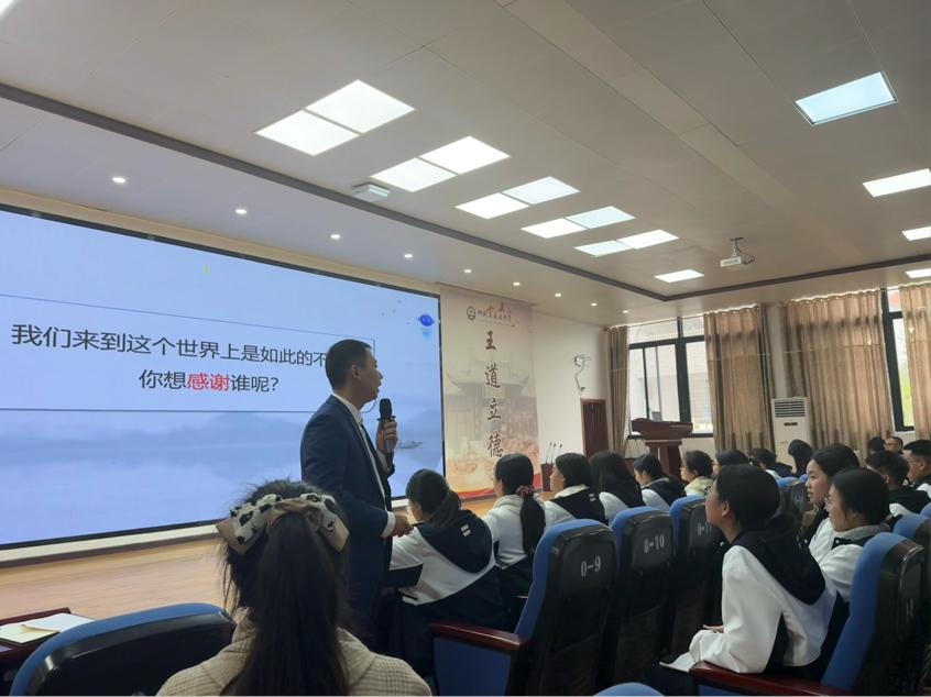 何军忠老师带来《纵有逆风起 生命不言弃》主题班课。课堂里,一段段学生突破困境的故事被娓娓道来,当“逆风而行”的感悟变成学生笔下的成长笔记,现场老师的笔记本上,“挫折是生命的弹力”成了共同的批注。这场关于“逆风中生长”的分享,让“生命能量”有了可触摸的温度。