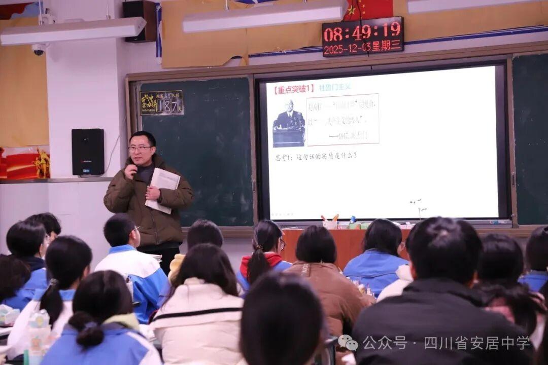 反馈交流中,学科中心组专家高度肯定了学校育人成效与教师专业素养。同时,他们明确要求:学校需持续深化教学改革,优化育人生态;教师要细化教学设计、提升课堂互动实效,鼓励学生主动参与、强化自主探究。(来源:四川省安居中学)