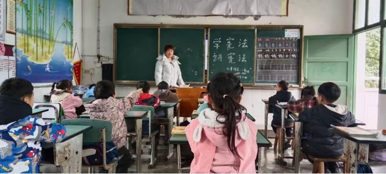 叙州区双龙学校水潭小学校区提前精准筹备,紧扣学生认知特点,精选宪法核心条款为晨读素材,配套编制通俗学习资料,依托校园环境布置营造浓厚学法氛围。活动现场,该校区师生集中诵读宪法条款,朗朗书声彰显宪法尊崇;教师结合生活实际通俗解读,将抽象法律知识转化为具象生活准则,引导学生领会宪法庄严与实践意义。