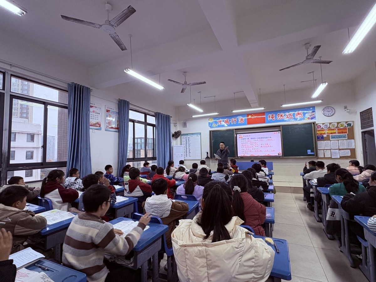 五年级黄敏老师则带领学生走进《古人谈读书》,教师语言幽默风趣,如秋日梧桐叶般多彩生动。课堂抓好小组合作学习,善于引导启发,实现了学以致用的目标,让古典智慧在当下课堂焕发新生。