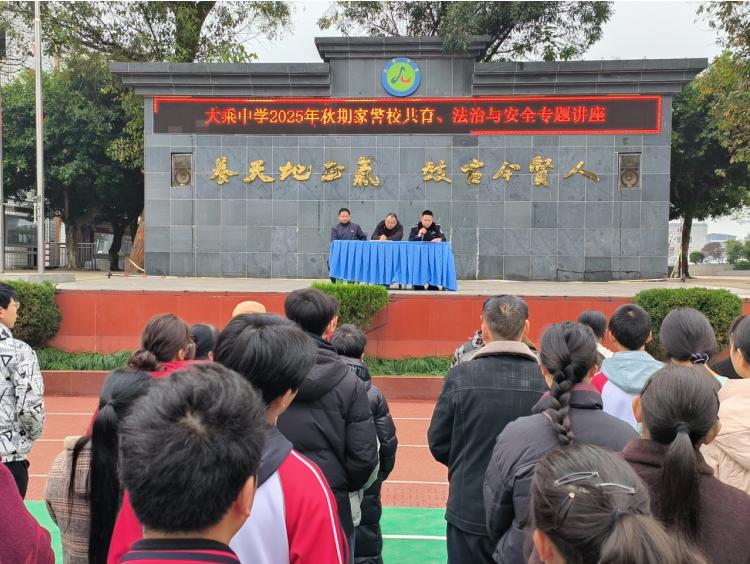 12月4日,屏山县大乘初级中学校召开了2025年秋期家长会;会议包括全校集会和分班共议两个部分。全校集会由该校政教副主任陈昌义主持,学生家长及全校师生参会,该校党支部书记、校长卢中平发言,大乘镇派出所警官黄旭东作专题讲座。分班共议在各班教室进行,由班主任主持。