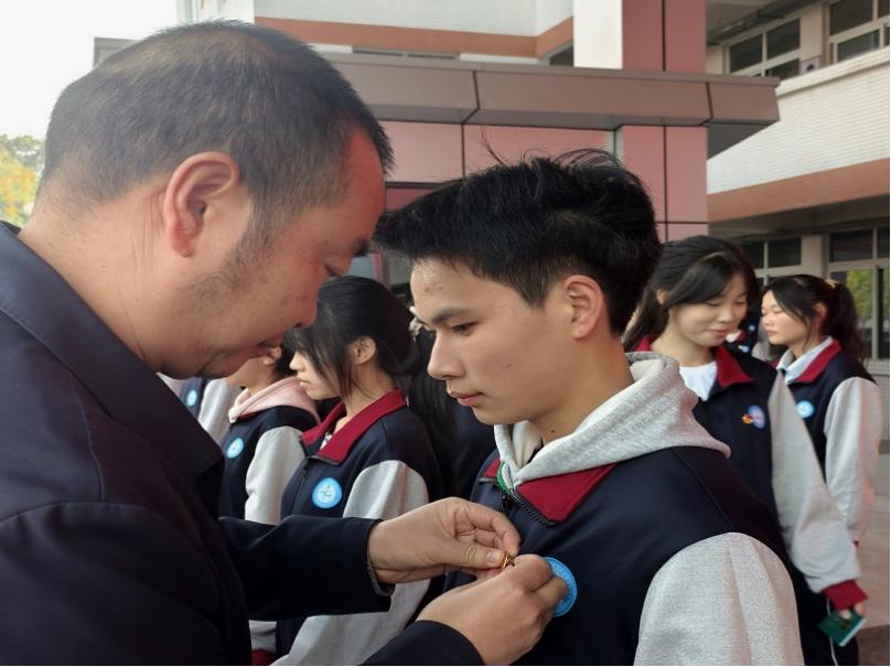 仪式在庄严的国歌声中拉开了帷幕。主持人首先宣读了本次新发展团员名单。随后,在激昂的歌声中,共青团宜宾市叙州区委书记郑桠、副书记张黎,叙州区高场职业技术学校党总支书记胡承雄、副校长肖发敏为新团员逐一颁发团员证并佩戴团徽。闪闪发光的团徽佩戴在胸前,不仅是一份荣誉,更意味着一份沉甸甸的责任和担当。