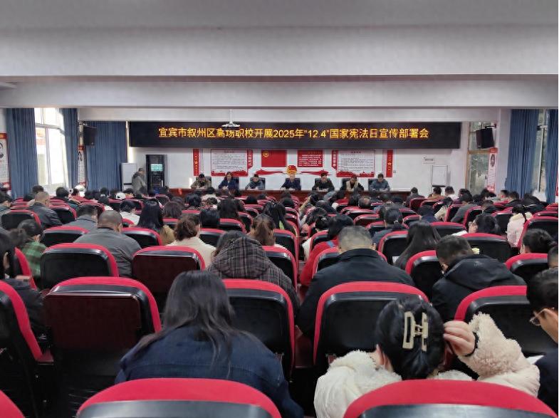 12月4日上午10时,叙州区高场职业技术学校各班通过全国青少年普法网观看2025年教育部第12个国家宪法日“宪法晨读”直播活动并参与跟读,将“宪法日宣传周”活动推向高潮。