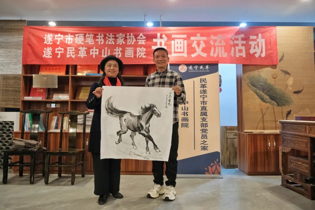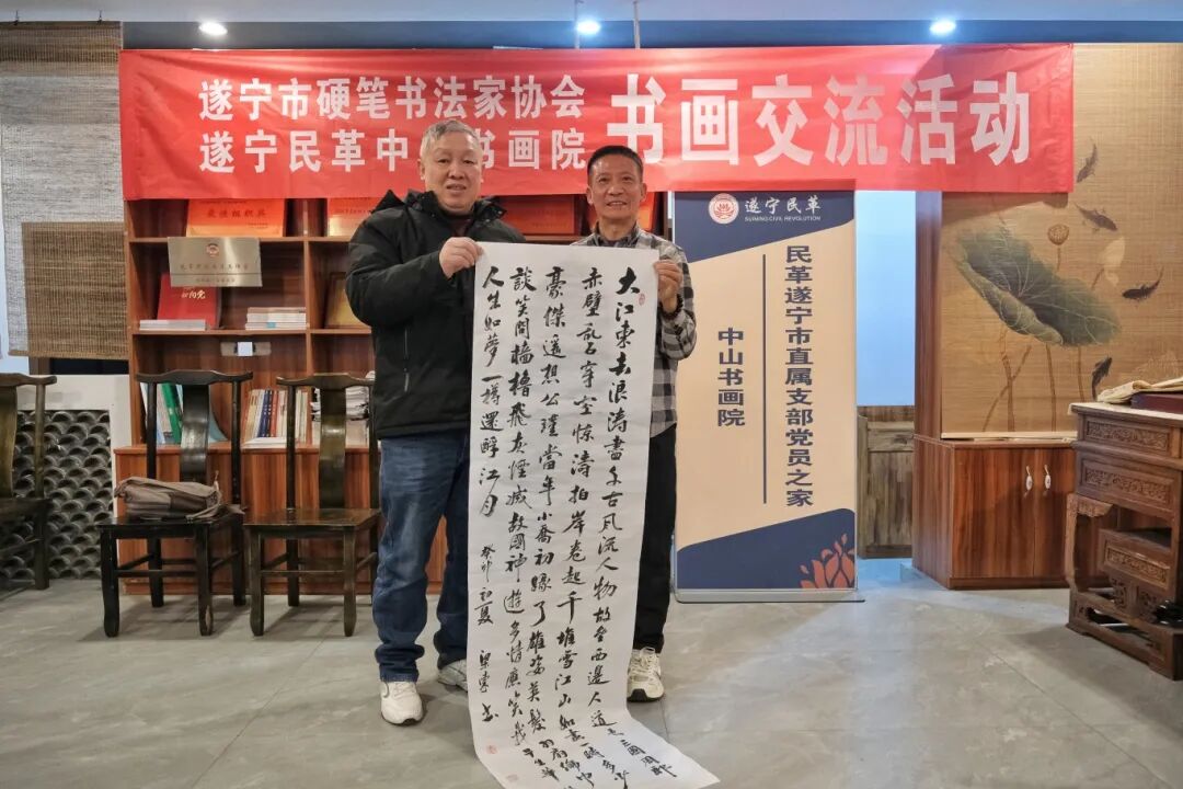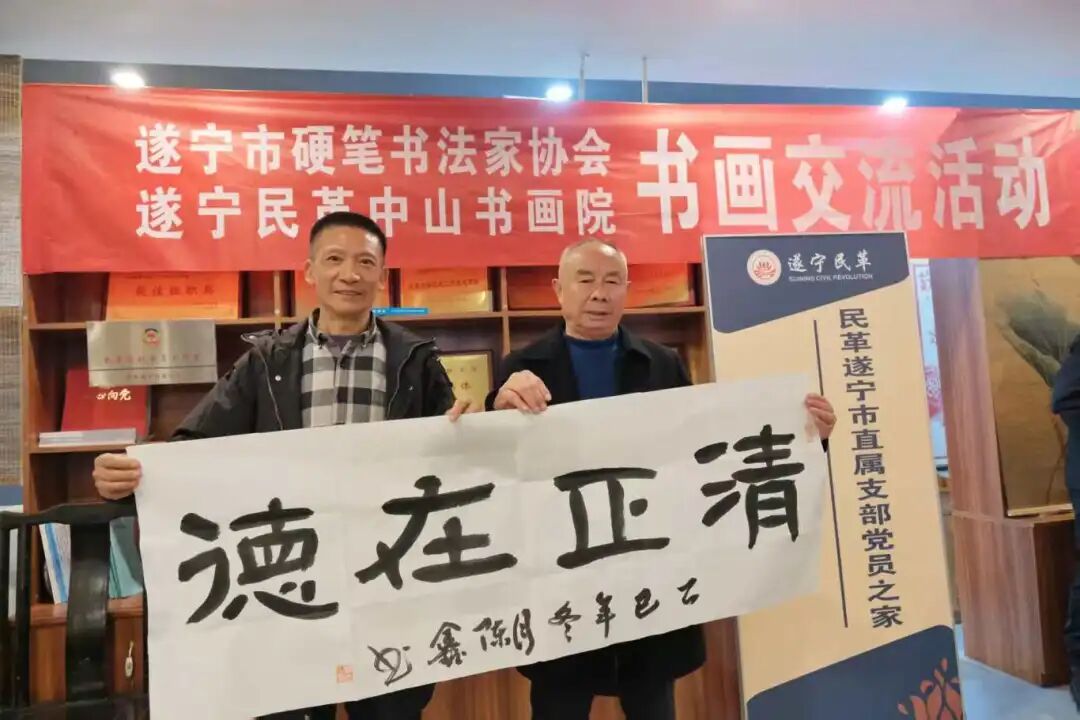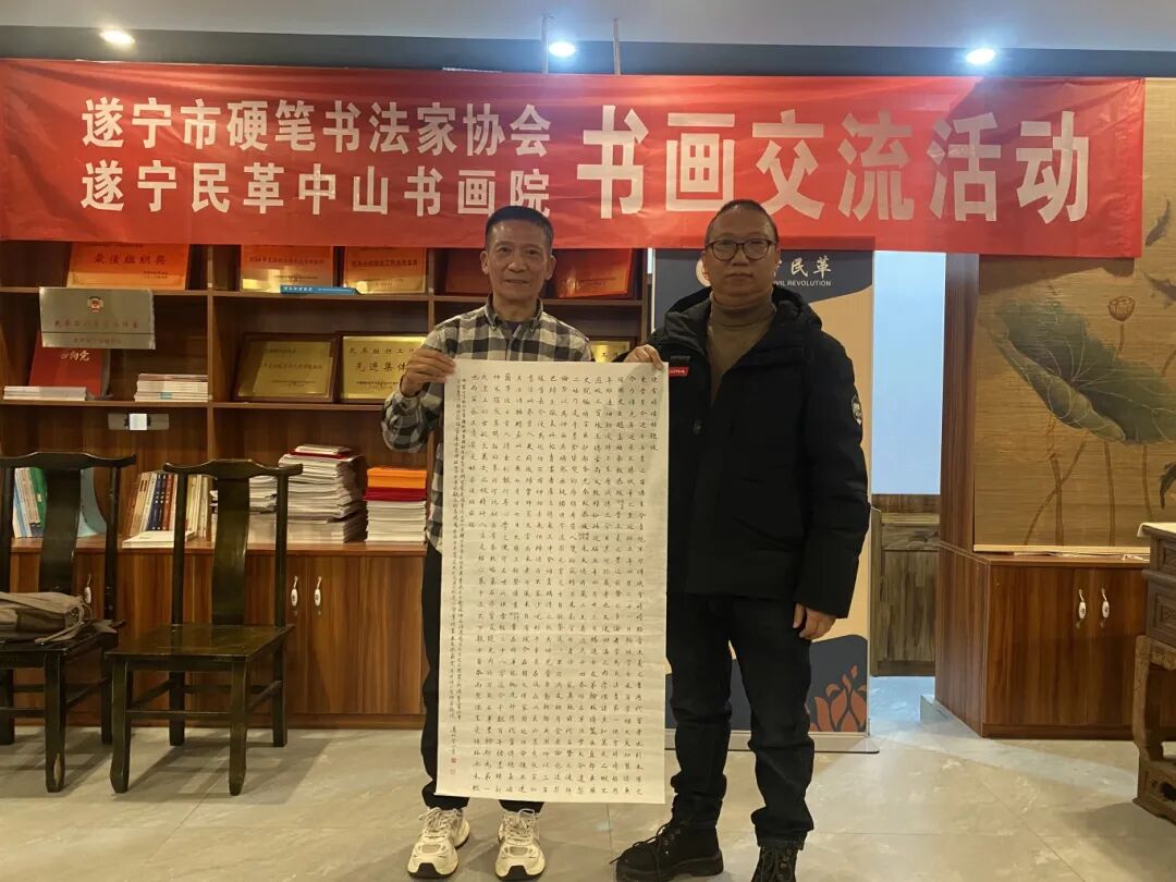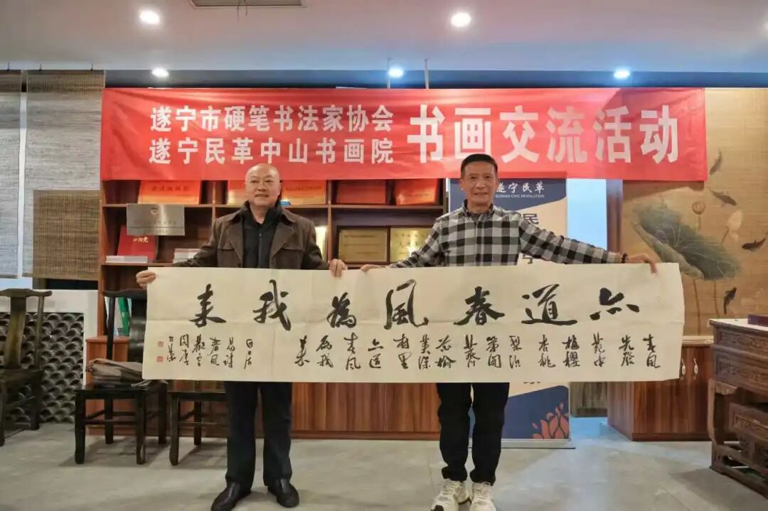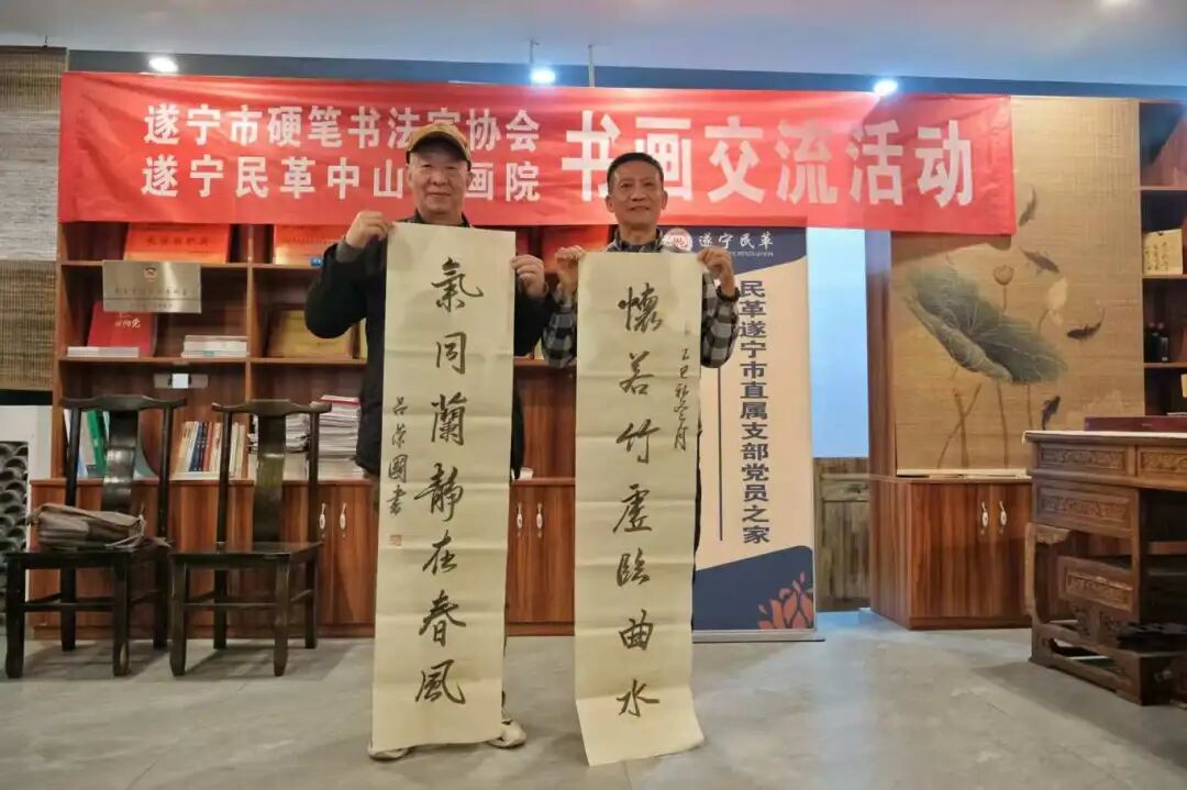 为传承中华优秀传统文化,搭建书画艺术交流平台,12月2日,遂宁市硬笔书法家协会与遂宁市民革中山书画院在遂宁市体育中心民革之家联合举办书画交流活动,以笔会友、以墨传情,共话艺术心得,共赏笔墨雅韵。
